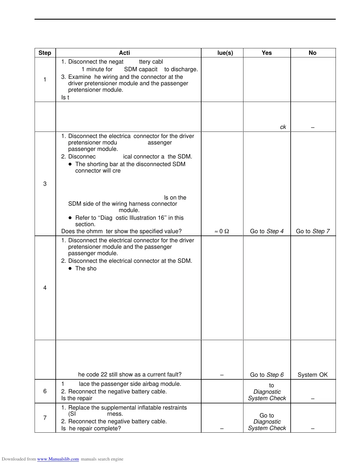 DTC 22 – Connection Between Driver Pretensioner Circuit and Passenger Pretensioner