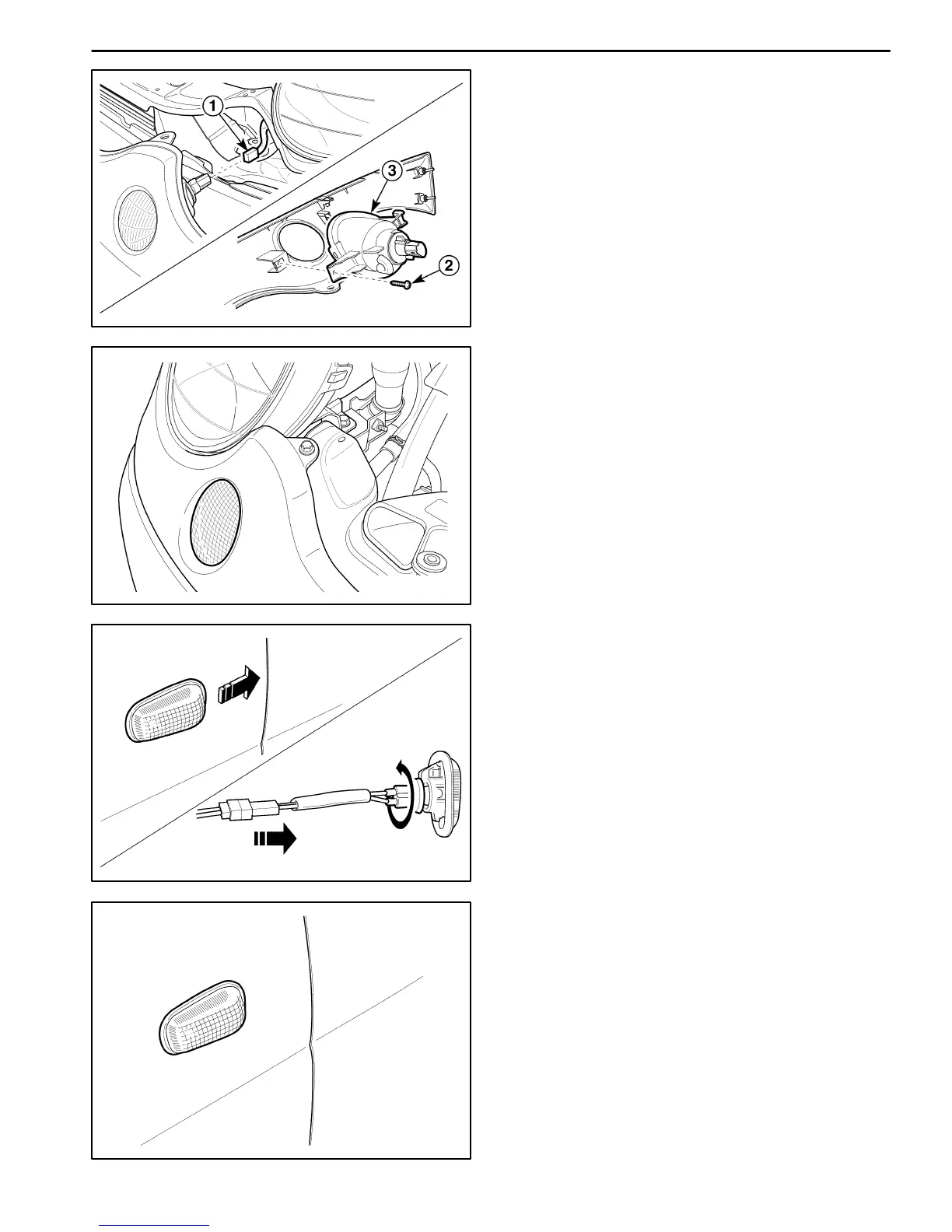 D Remove the turn signal lamp assembly (3).