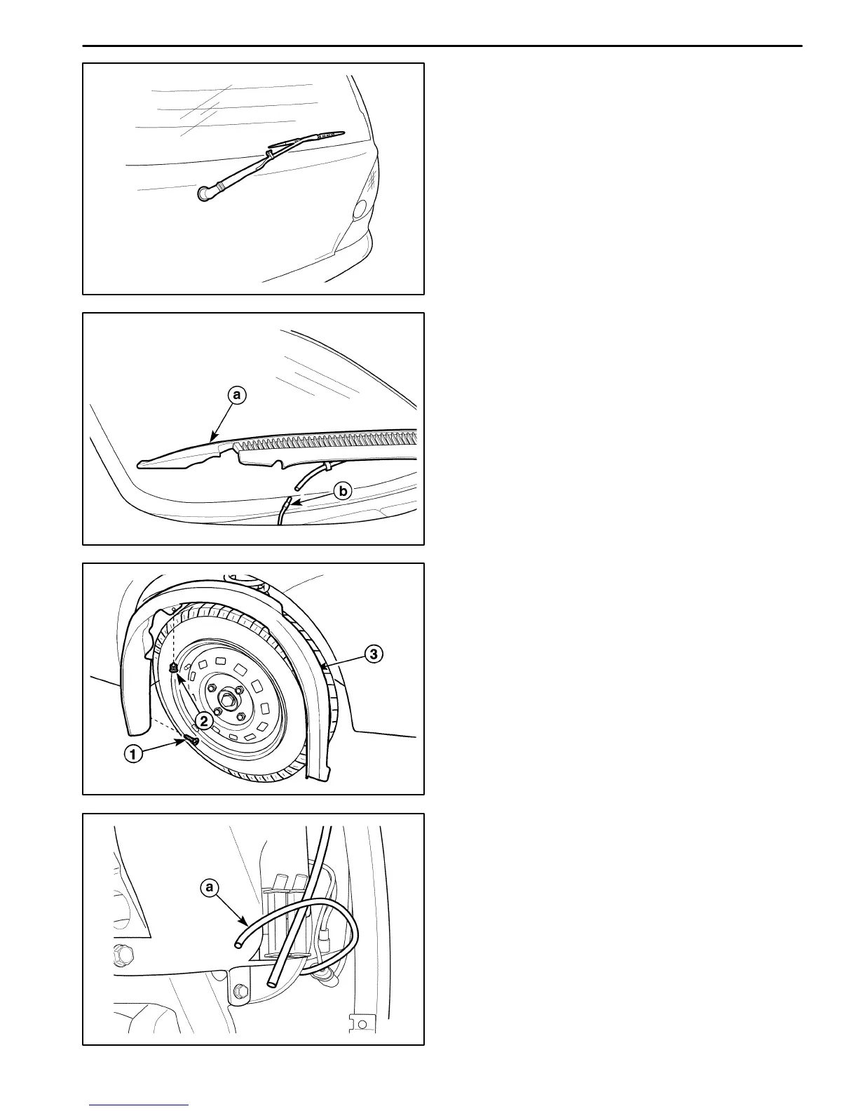 D Install the washer nozzle hose in the wiper arm re-