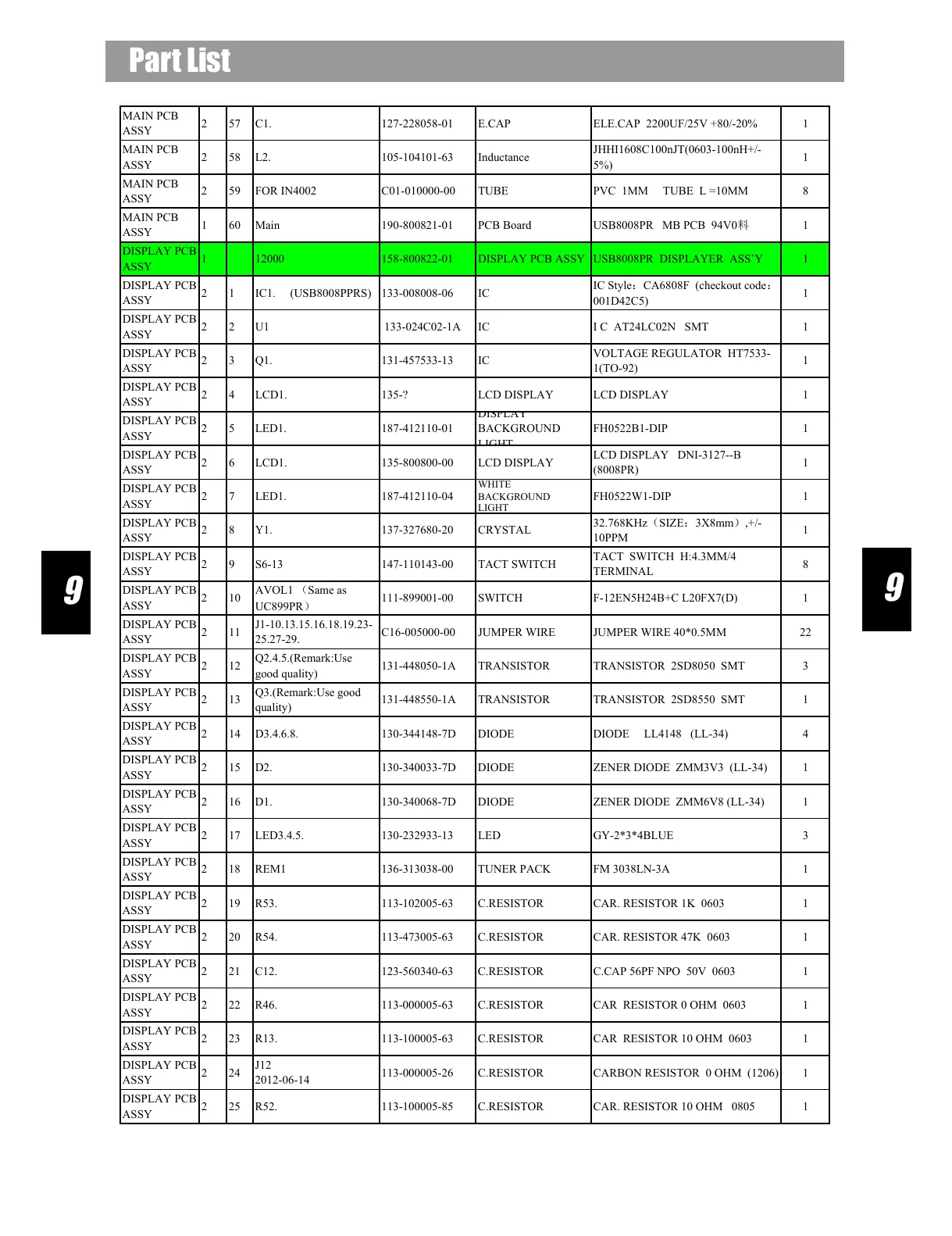 1 12000 158-800822-01 DISPLAY PCB ASSY USB8008PR DISPLAYER ASS’Y 1