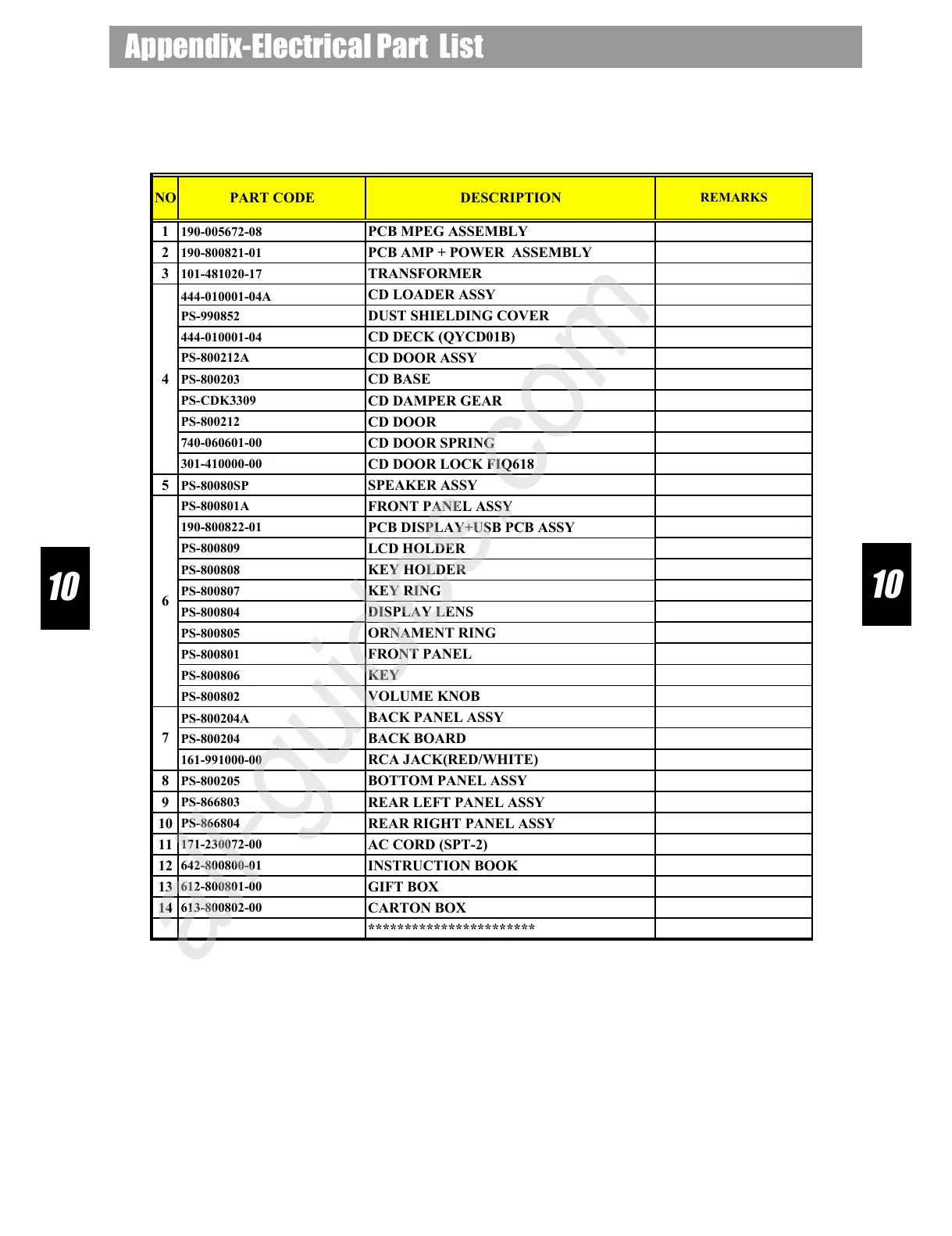 Daewoo MC-5210SU - Appendix - Electrical Part List