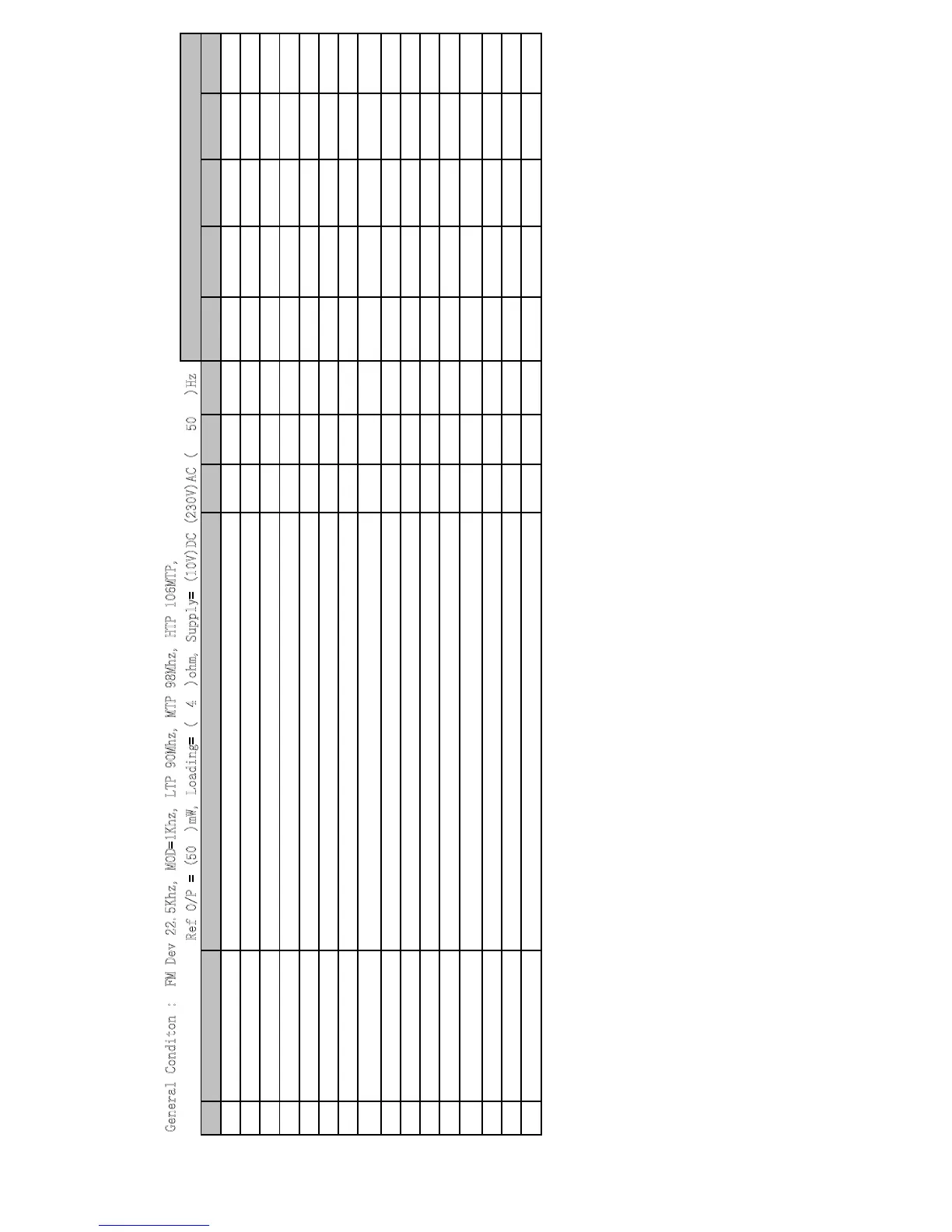 u@MTP , sig-F@MTP 60dBuv, 1khz, ^ dev, vol=max>O/P=A, power =AxA/speaker ohm