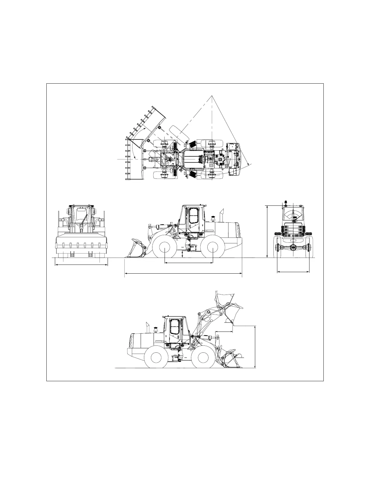 Figure 1, illustrates exterior machine dimensions and working range of machine when it is equipped with a