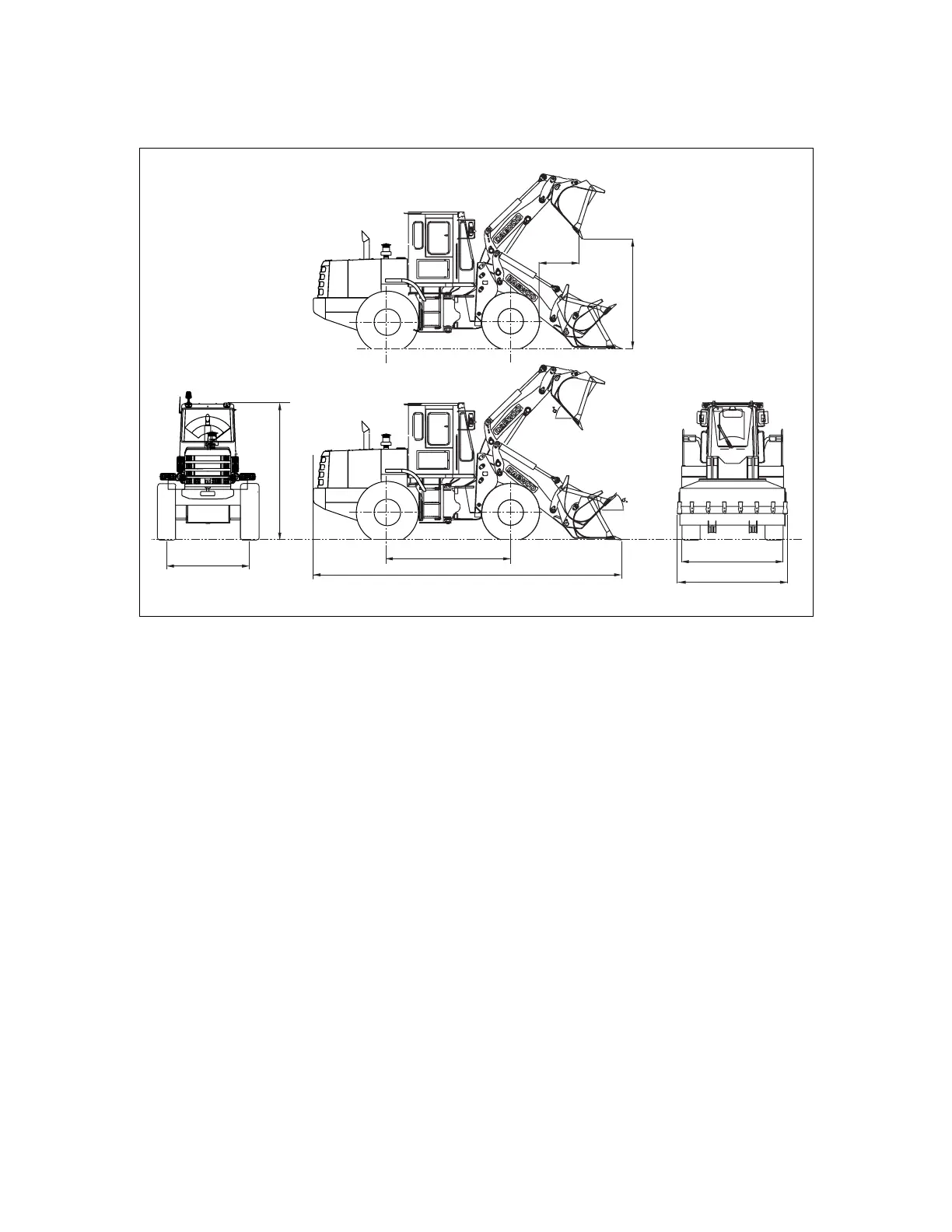 Figure 2 illustrates exterior machine dimensions and working range of machine when it is equipped with a