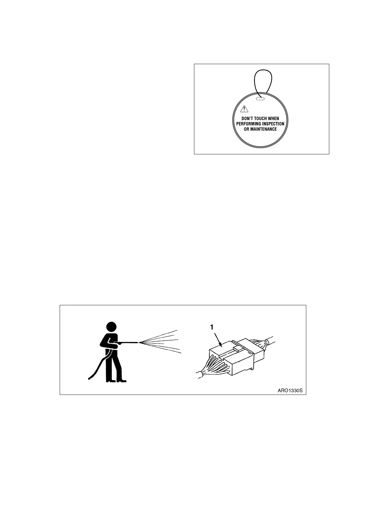• Do not spray water directly on electrical components (sensors, connector) (1, Figure 25). If