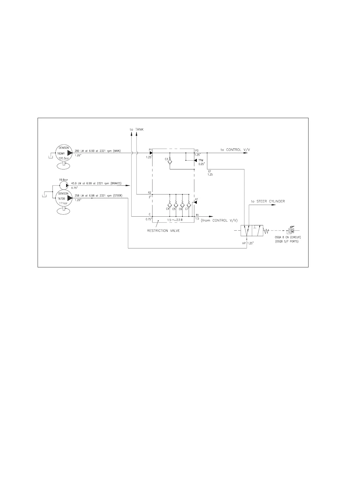 valve at port EF. This allows output from the steering pump to join flow from the main pump to supply the