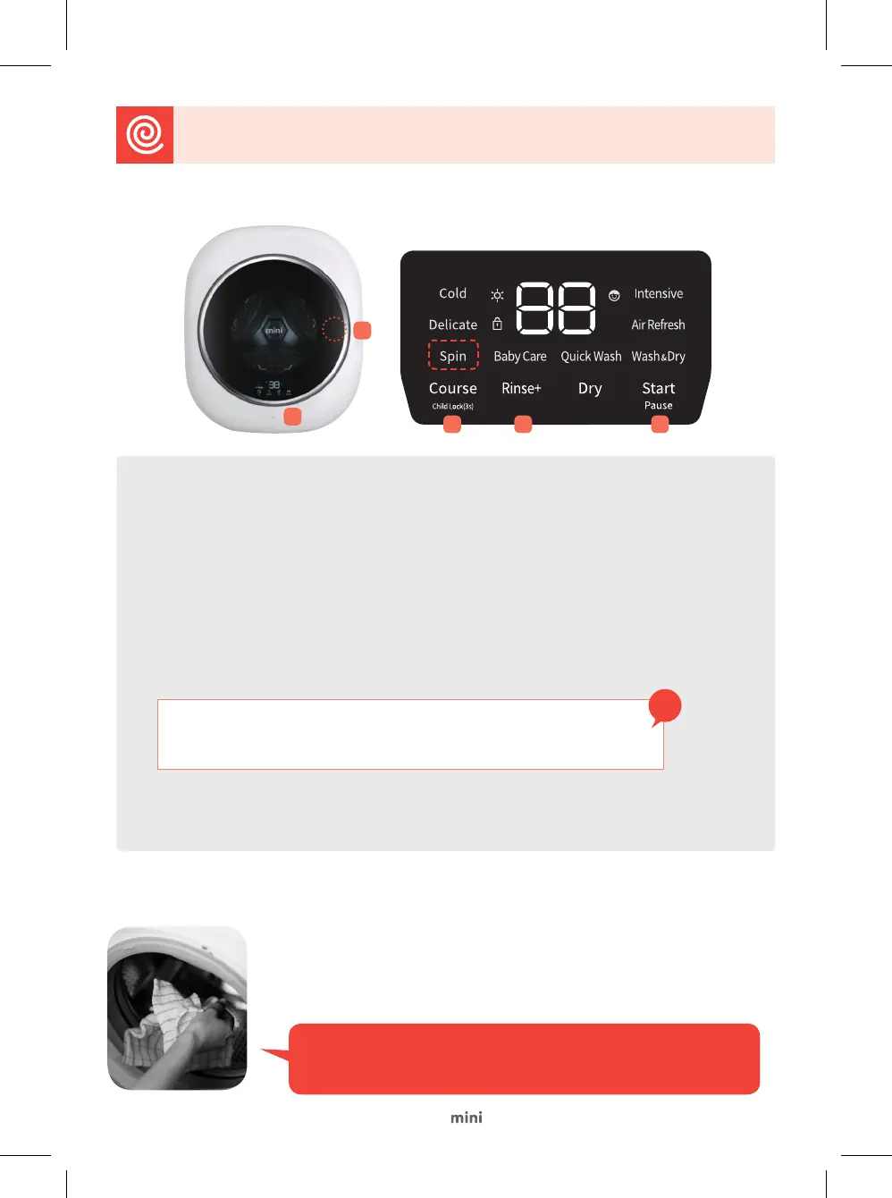 ※ The maximum number of rinse cycles allowed for Spin course is 5.
