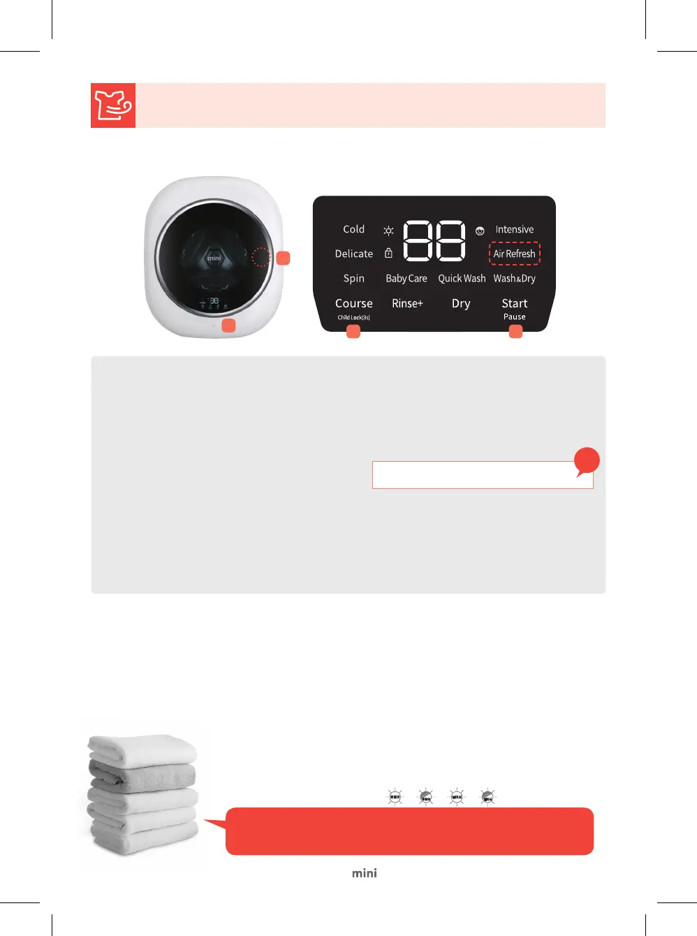 - Because Air Refresh disinfects and deodorizes clothes using heat, the washer’s interior will become hot.