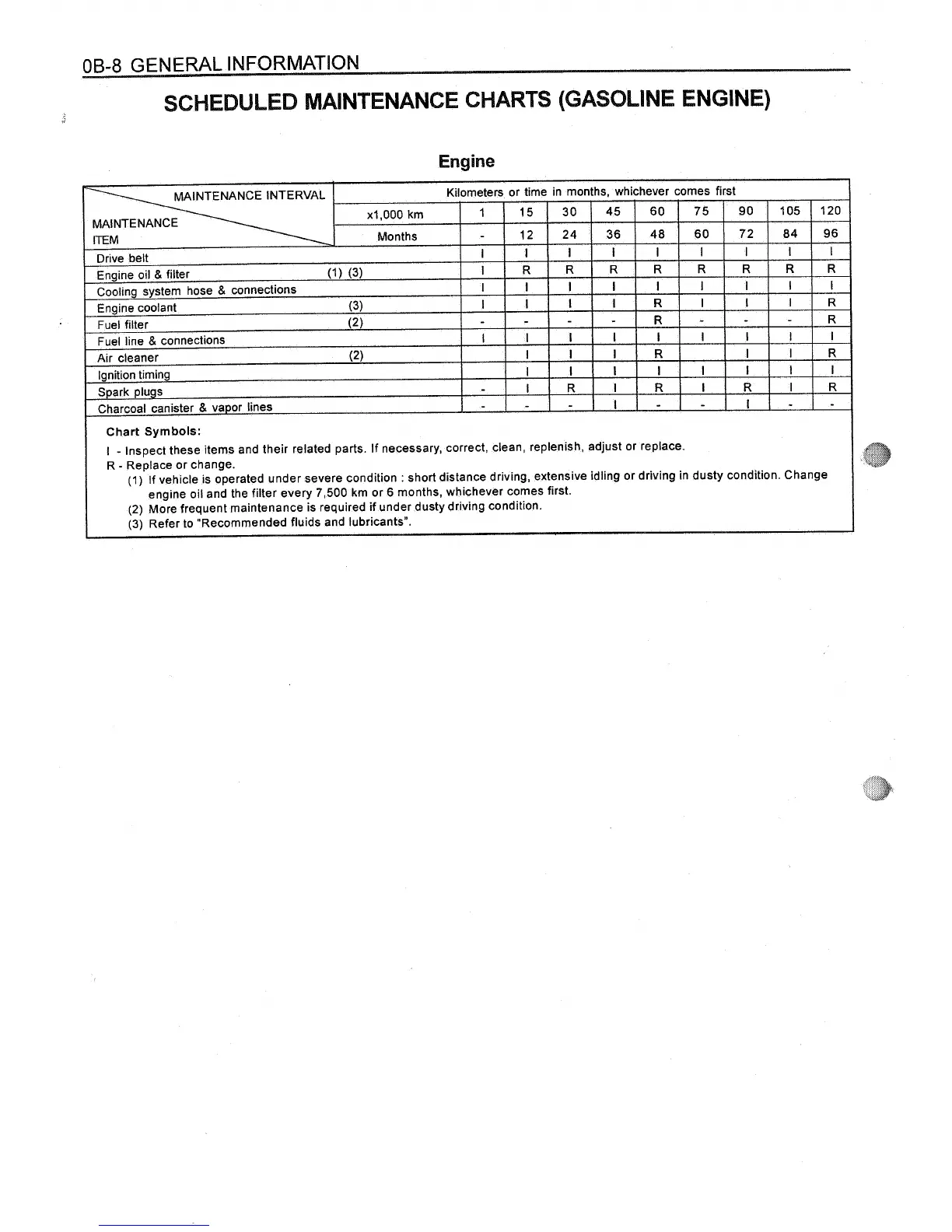 Daewoo MUSSO - Scheduled Maintenance Charts (Gasoline Engine)