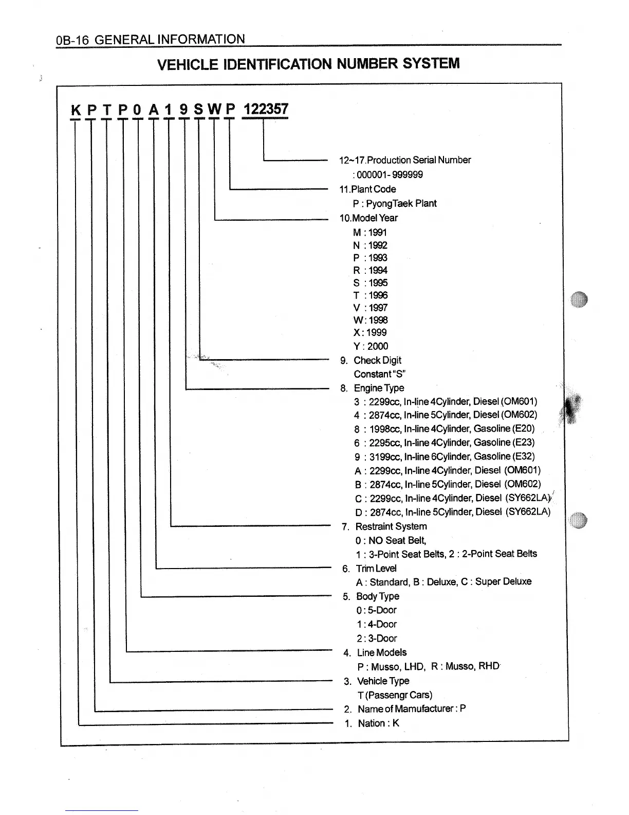 Daewoo MUSSO - Vehicle Identification Number System