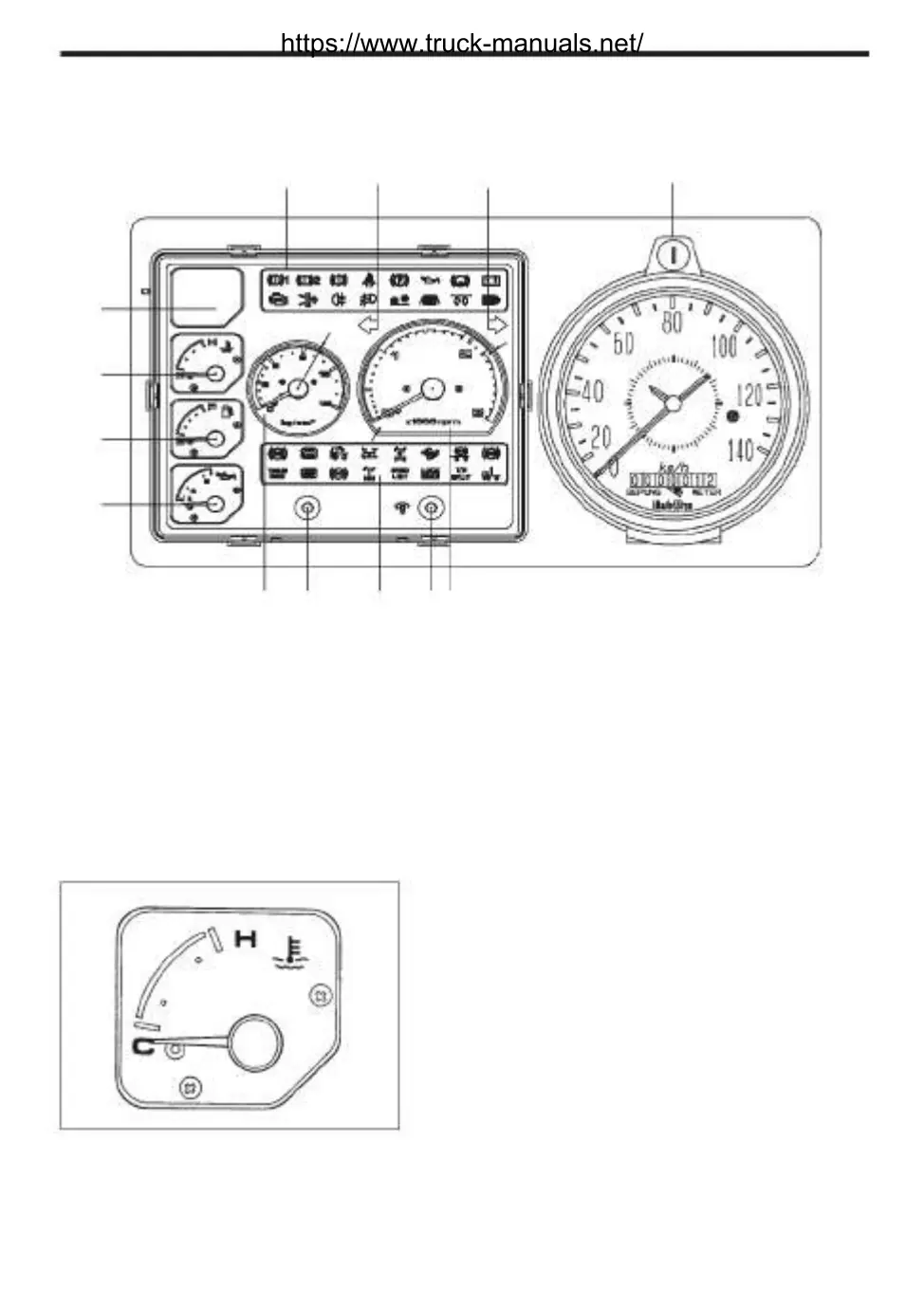 3. Fuel gauge 7. Tachograph 11. Miscellaneous indicator lamps and