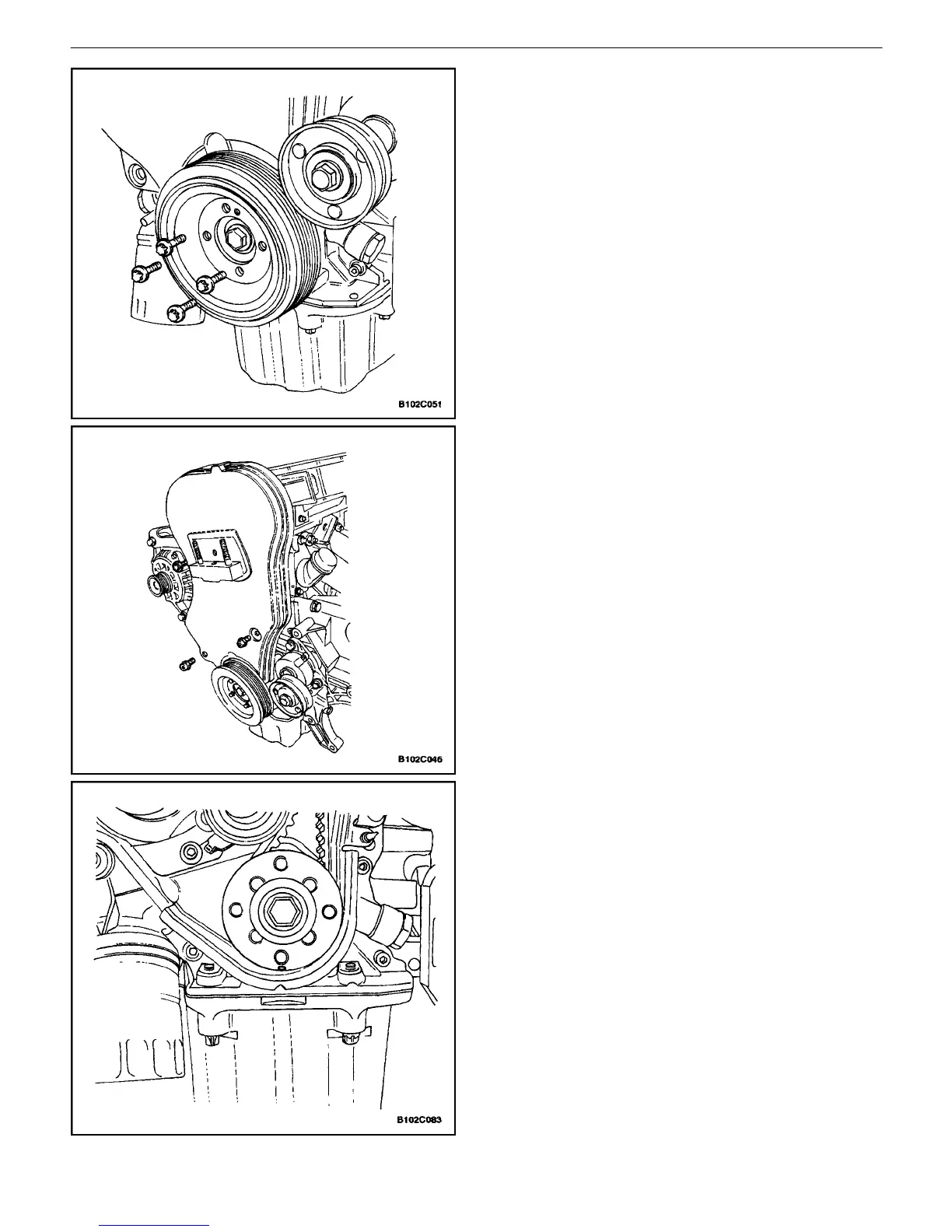 10. Remove the crankshaft pulley bolts.
