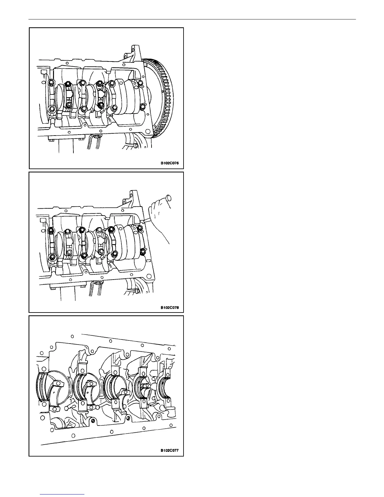 46. Remove the crankshaft bearing caps and the lower