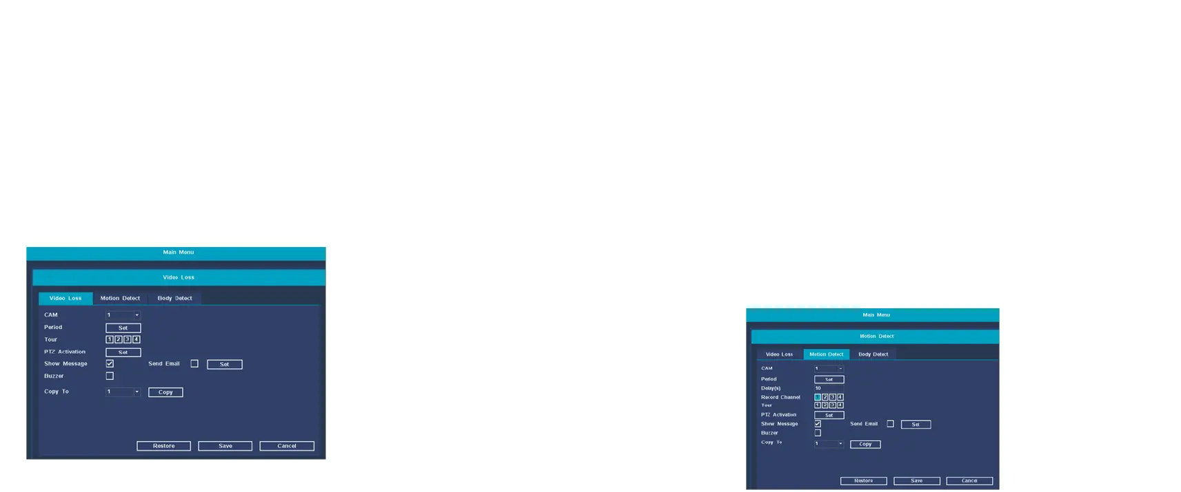 【Record Channel】 Select the channel to set the motion