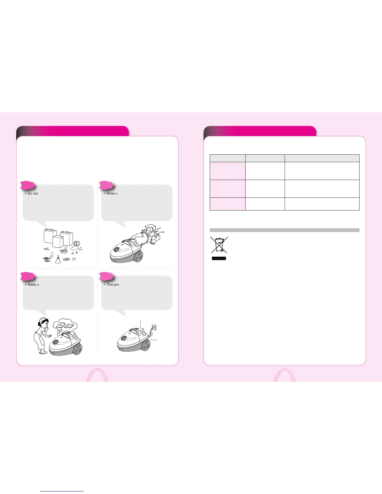 •Donotvacuumareaswhichcontain