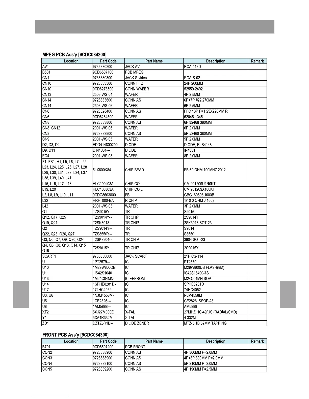 Daewoo RD-430 - Appendix: Electrical Part Lists (Part 1); MPEG PCB Assy Parts List