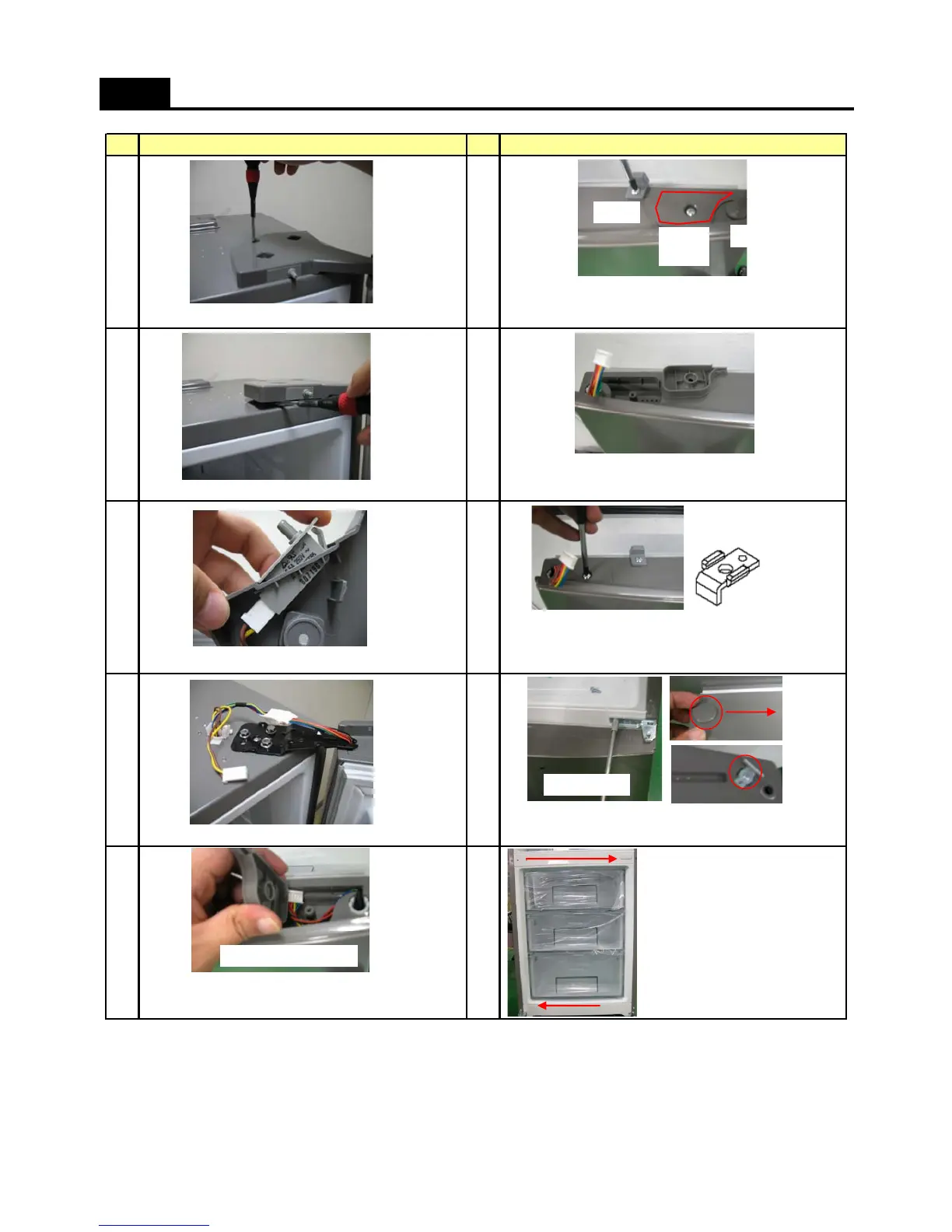 Remove top cover hinge screw with (+) driver. Switch and Cover Bushing.