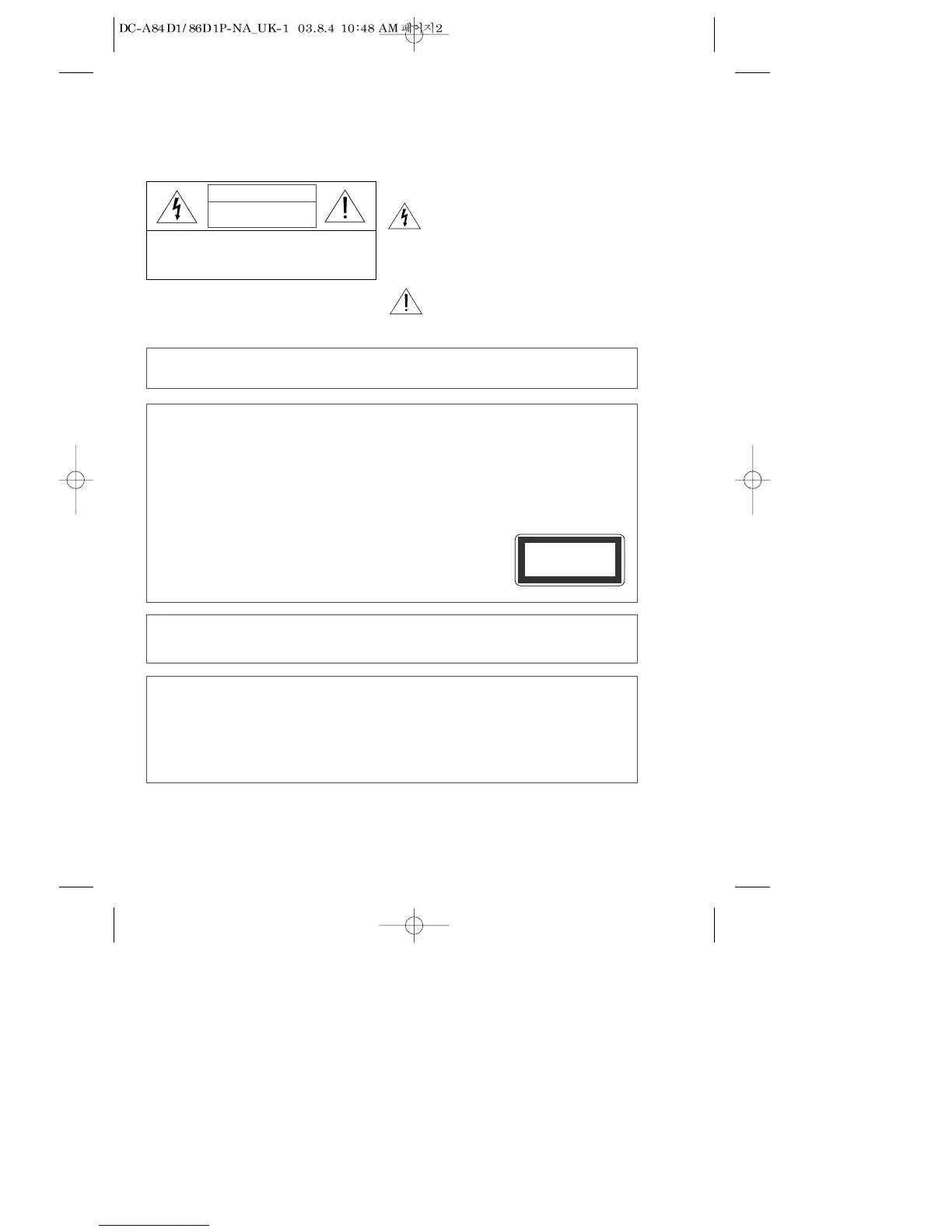 • CAUTION : Do not open the top cover. There are no user serviceable parts