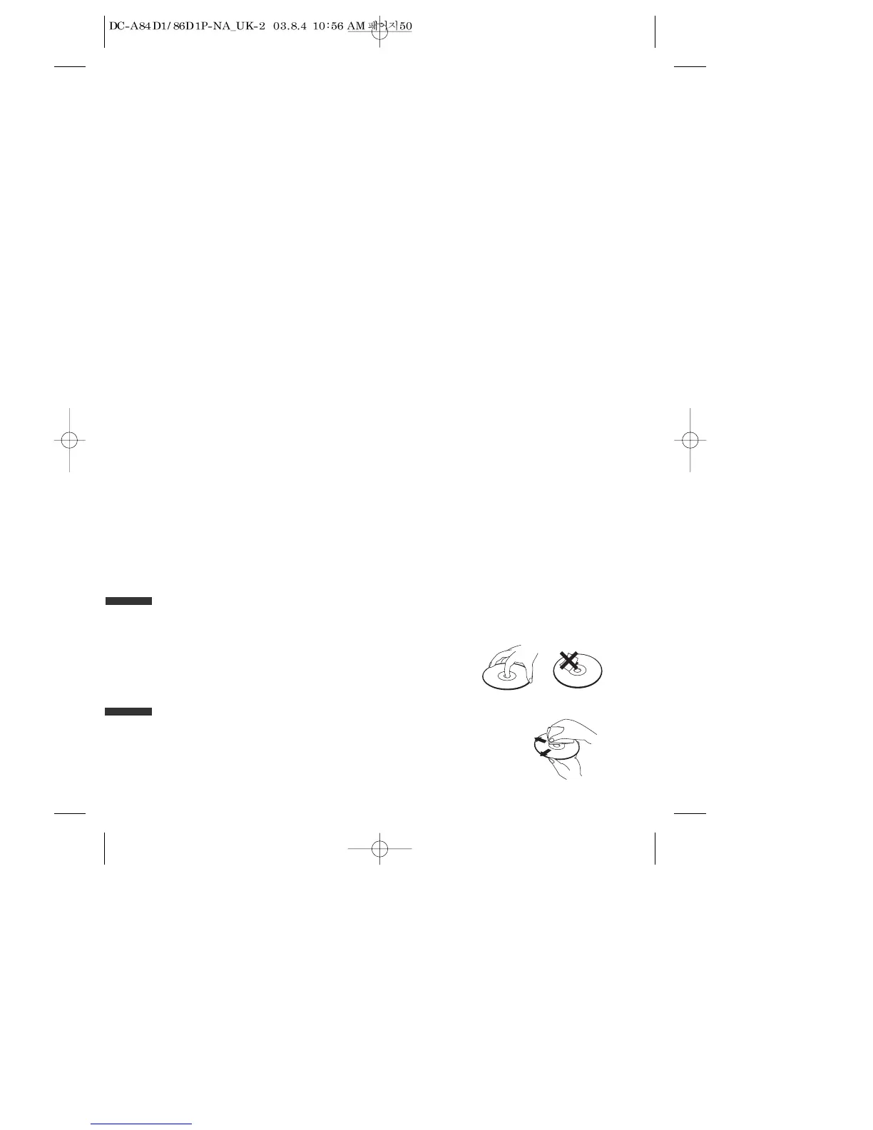• To keep a disc in a clean condition, please do not touch the side containing play