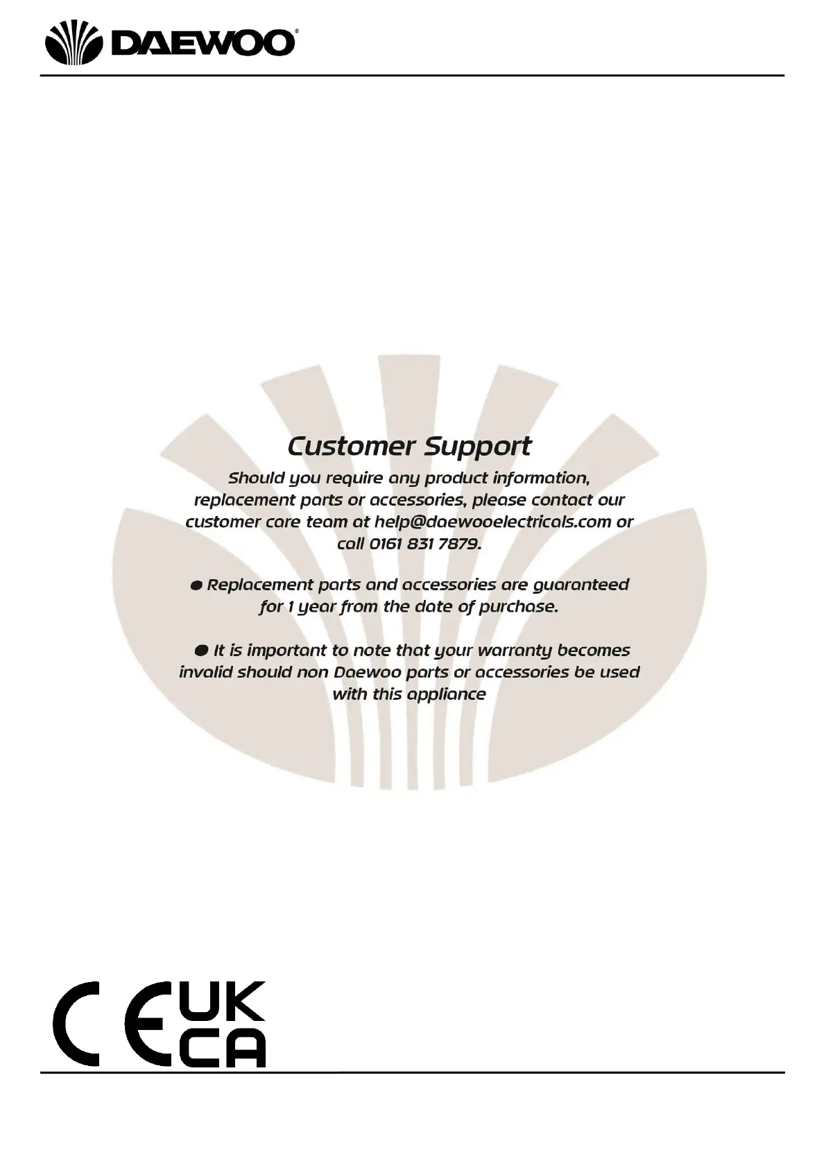 Daewoo SDA 2479 - Customer Support; Customer Support Contact