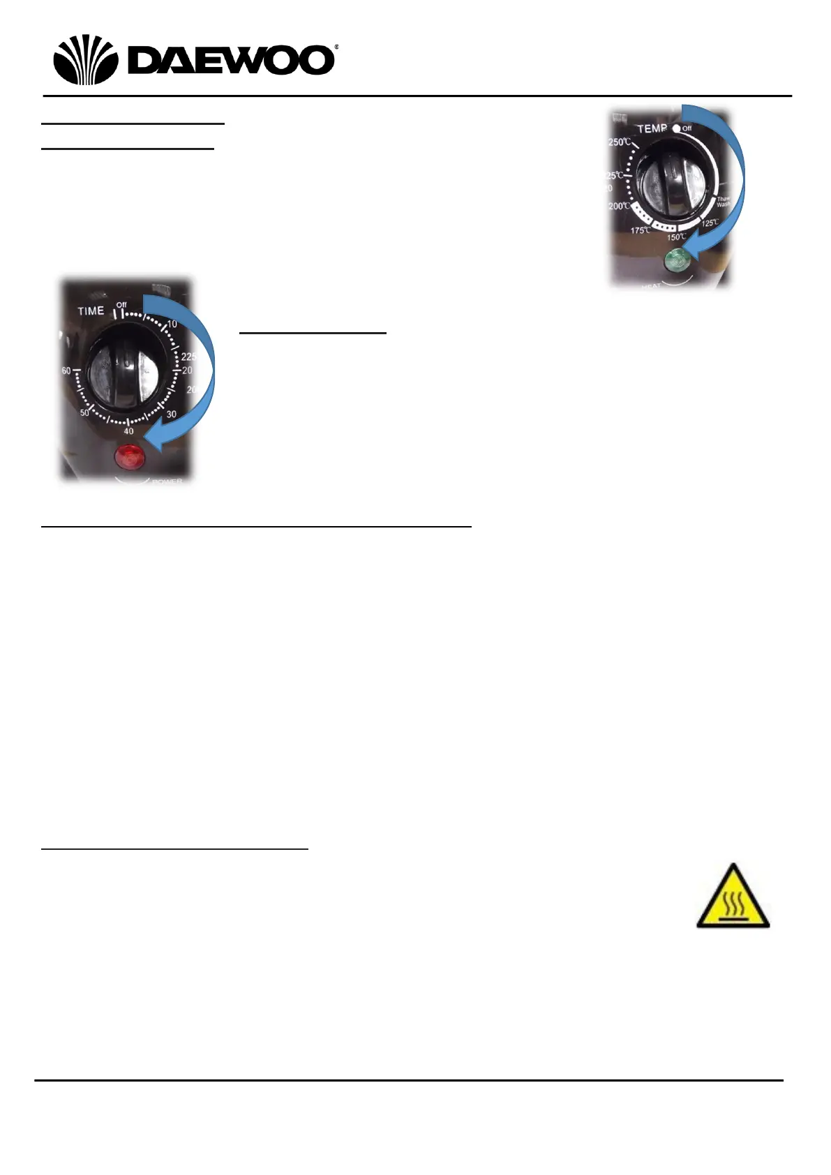 Once food is cooked it can be kept hot by turning the Thermostat (2) to 150˚C