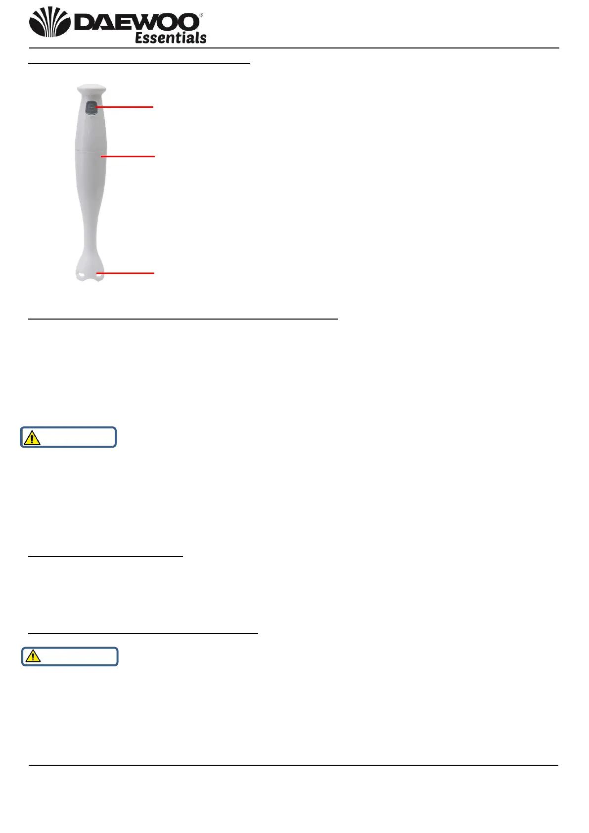 WARNING! The blades on this hand blender are very sharp; extreme caution