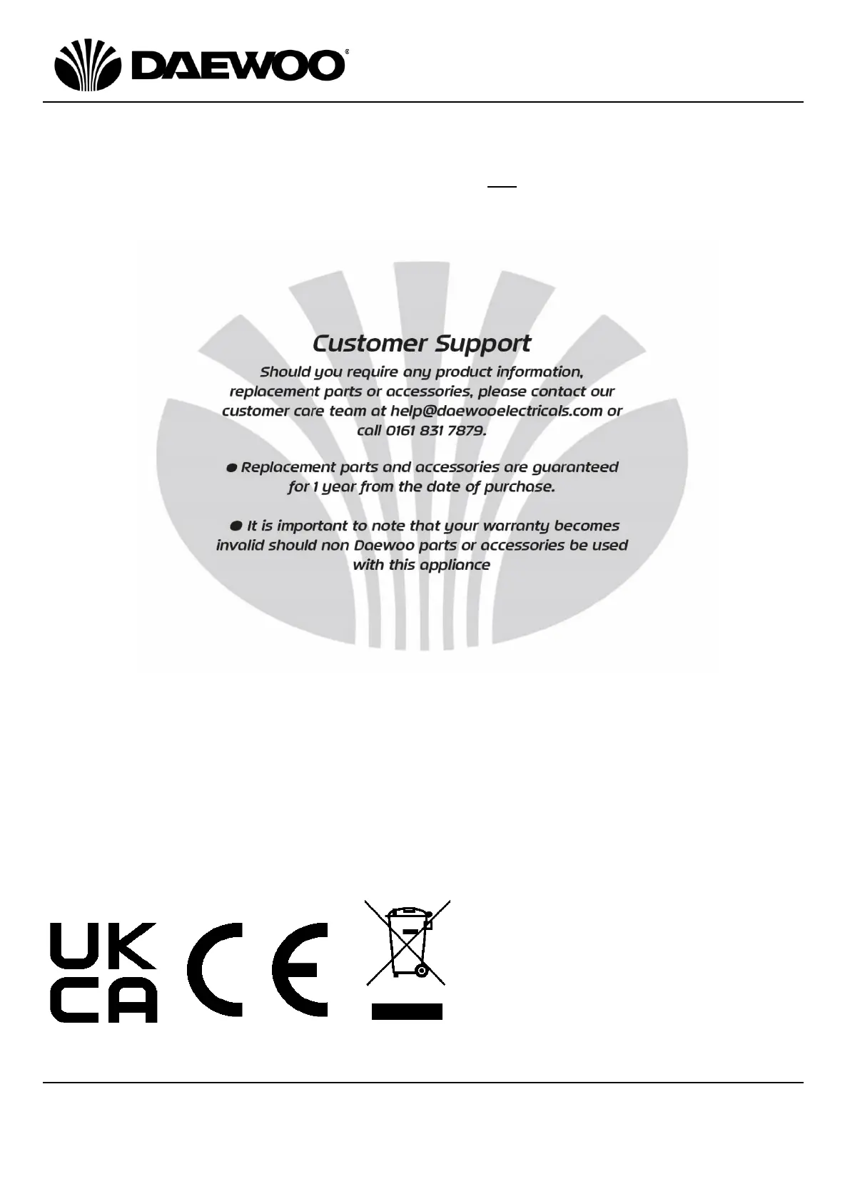 Daewoo SDA1714 - Customer Support and Service