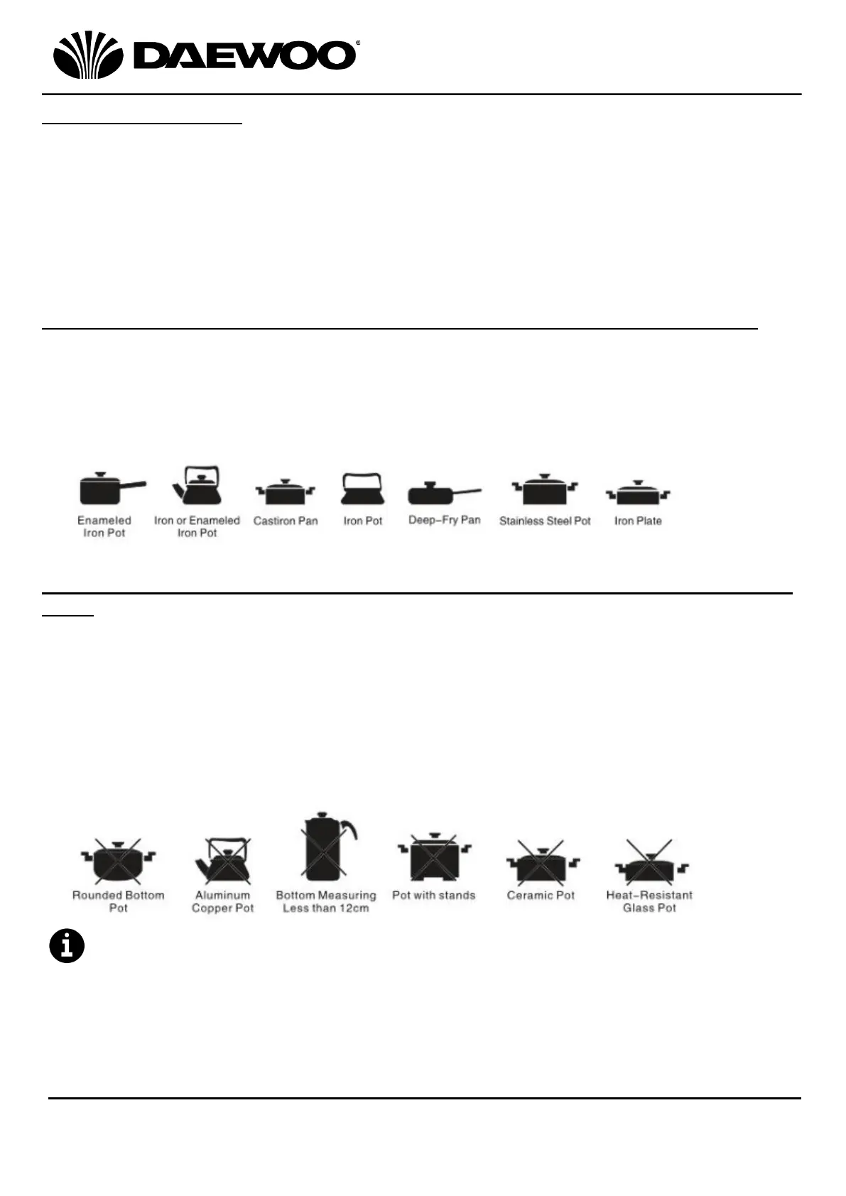 Do not use pots and pans with a diameter of less than 12cm.