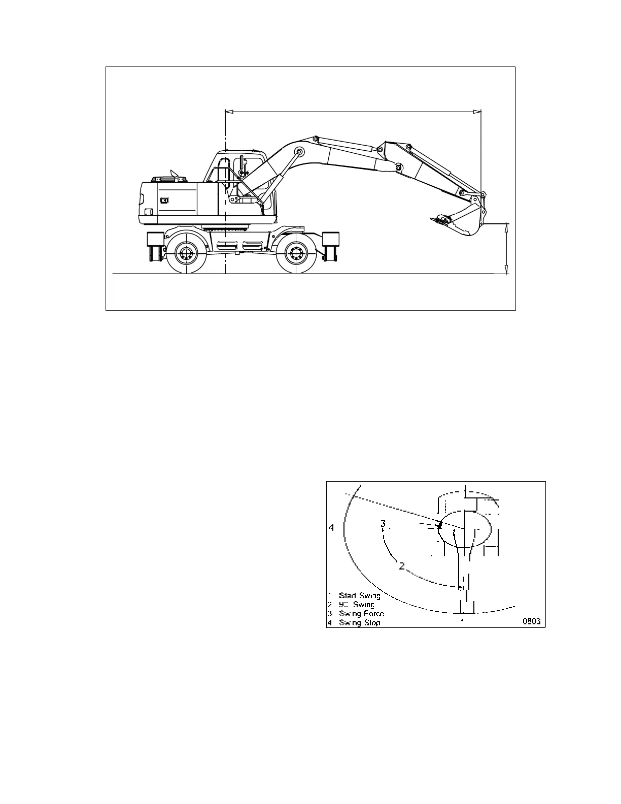 Extend the arm cylinder completely and retract th e bucket cylinder, as shown, to test swing speed. The