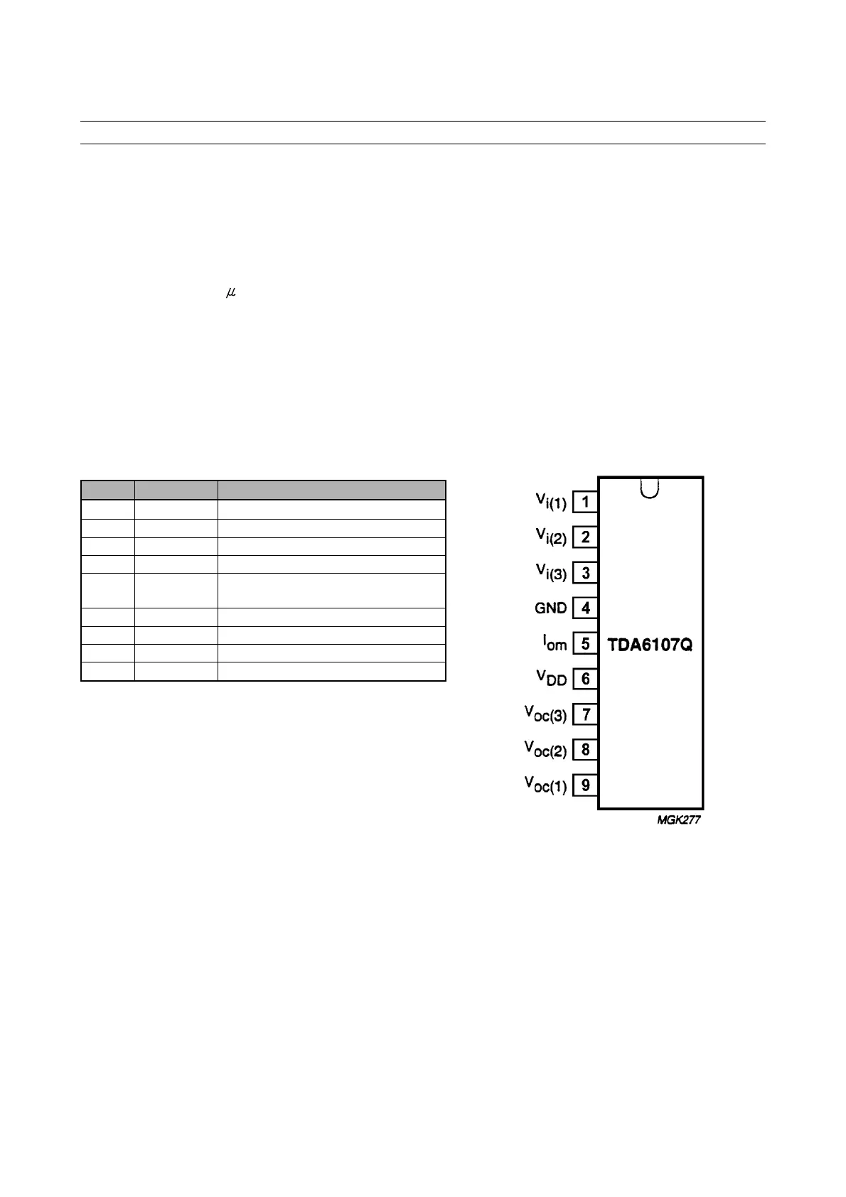 The TDA6107Q includes three video output amplifiers in one plastic DIL-Bent-SIL 9-pin medium power package,