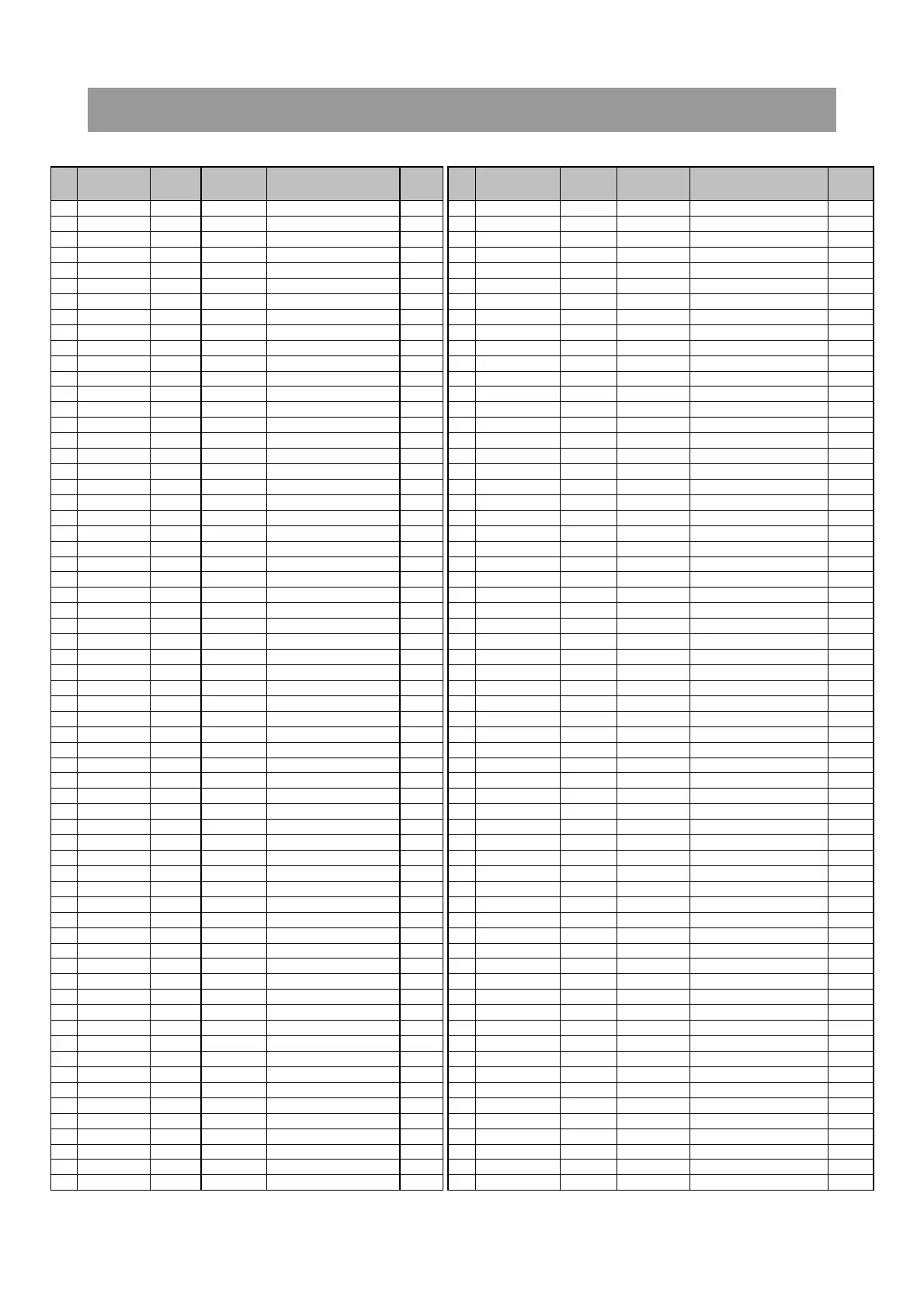 NO PART-NAME LOCATION PART-CODE PART-DESC REMARK NO PART-NAME LOCATION PART-CODE PART-DESC REMARK