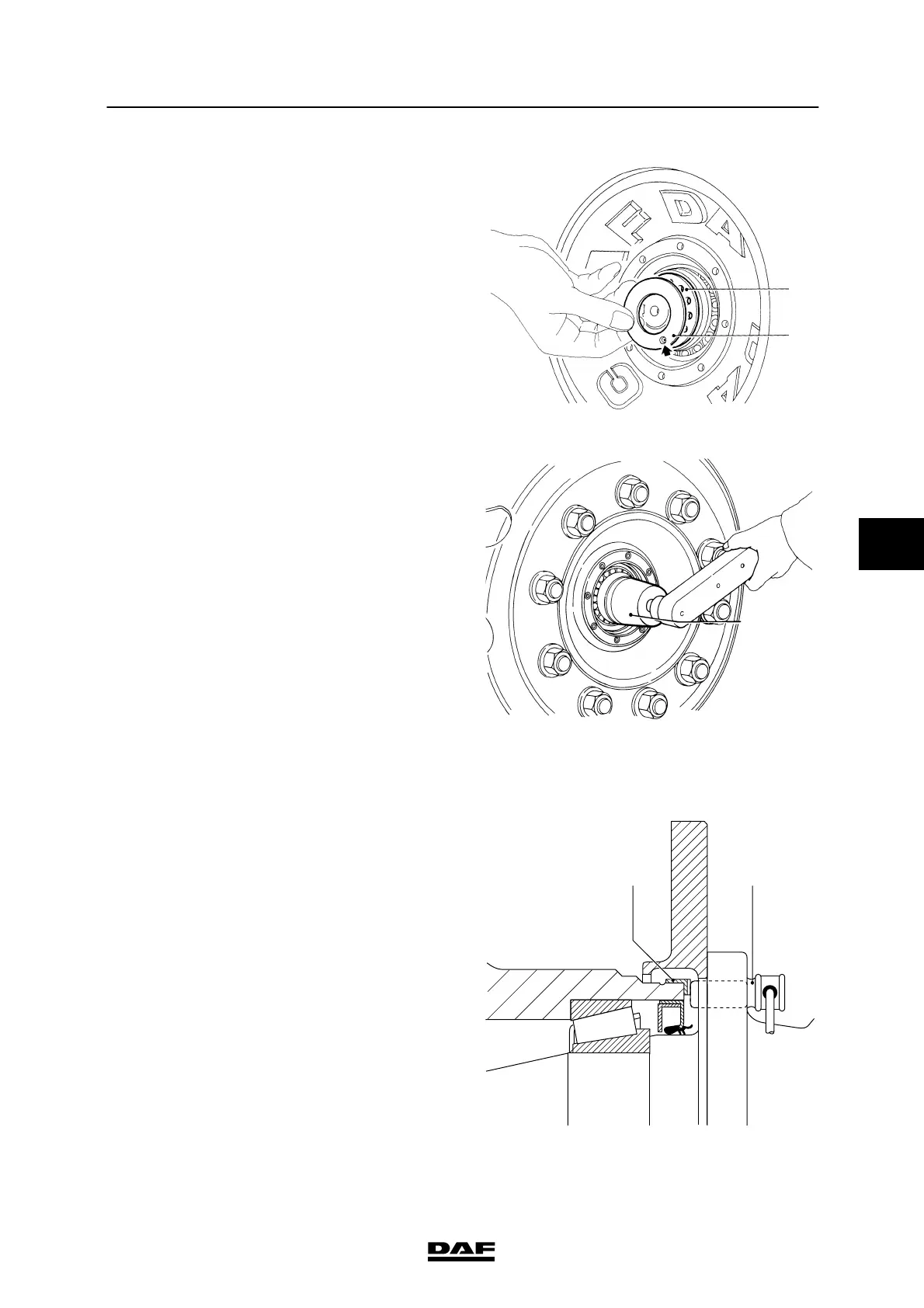 21. Fit the hub cap (2). Tighten the bolts (1) to