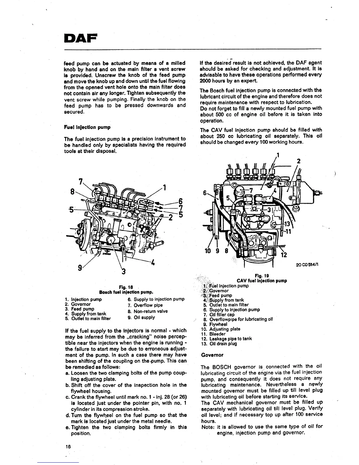 DAF DA 475 - Fuel Injection Pump; Bosch and CAV Injection Pumps; Governor Operation