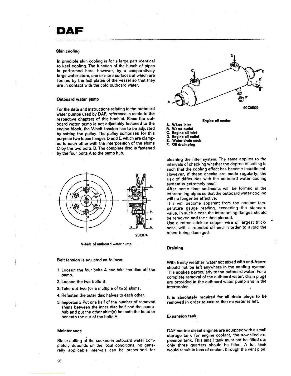 DAF DA 475 - Outboard Water Pump and Oil Cooler; Draining and Expansion Tank