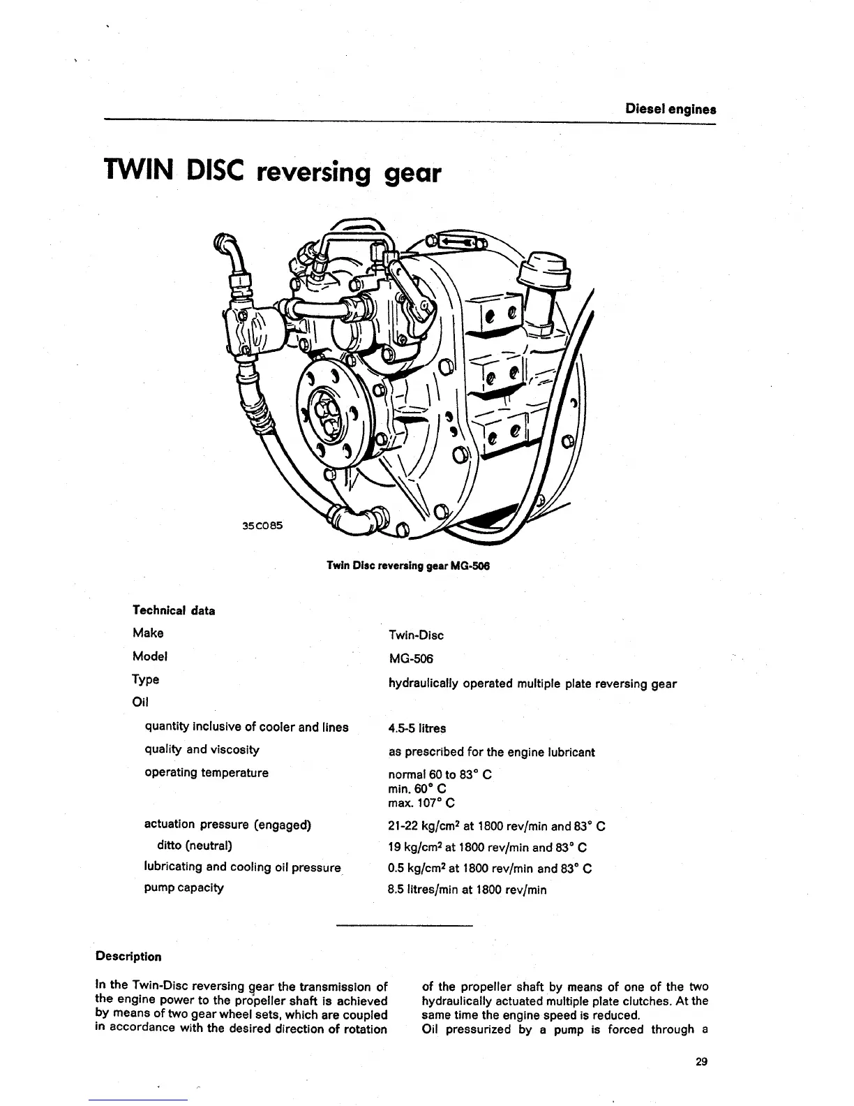 DAF DA 475 - TWIN DISC Reversing Gear; Technical Data and Description