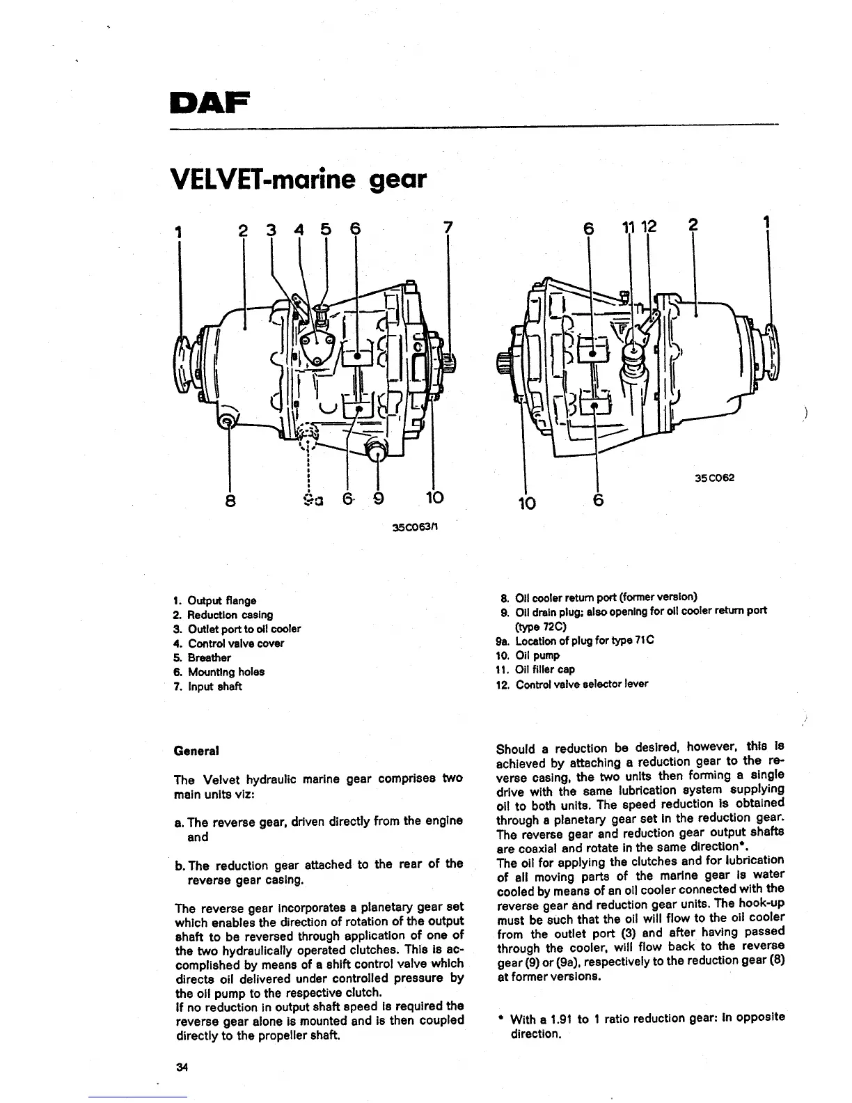 DAF DA 475 - VELVET Marine Gear; Marine Gear General Description