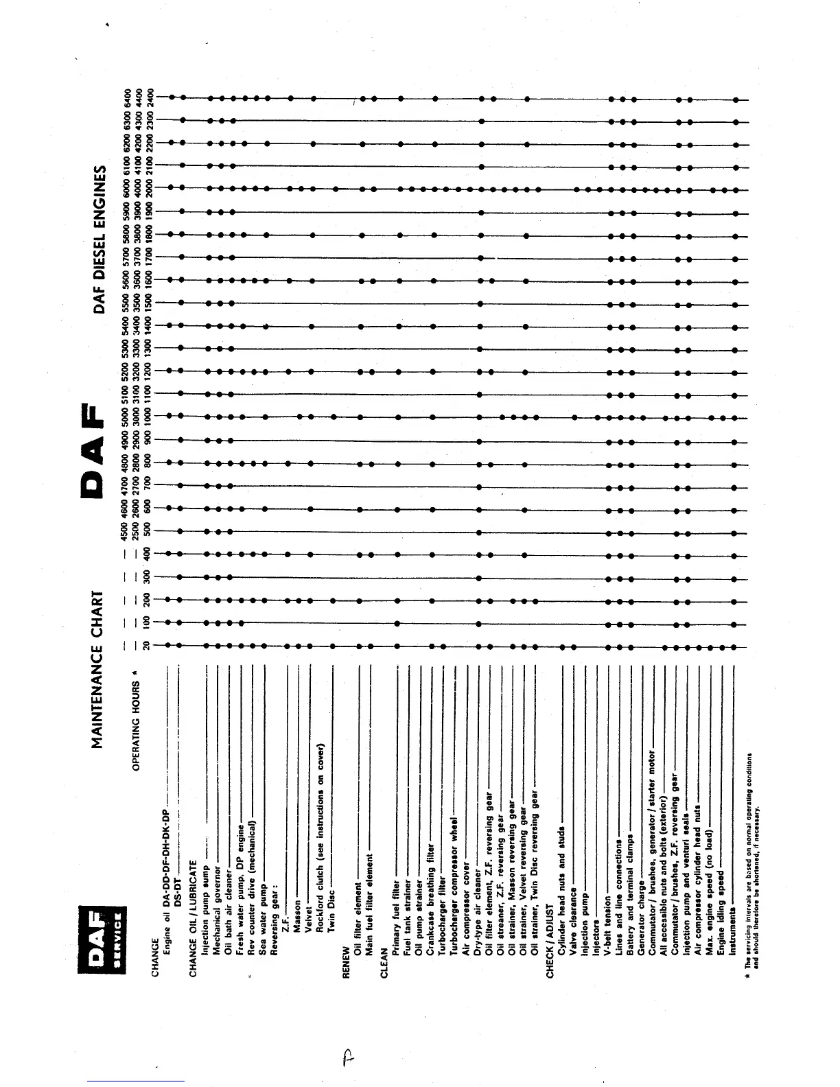 DAF DA 475 - Maintenance Chart