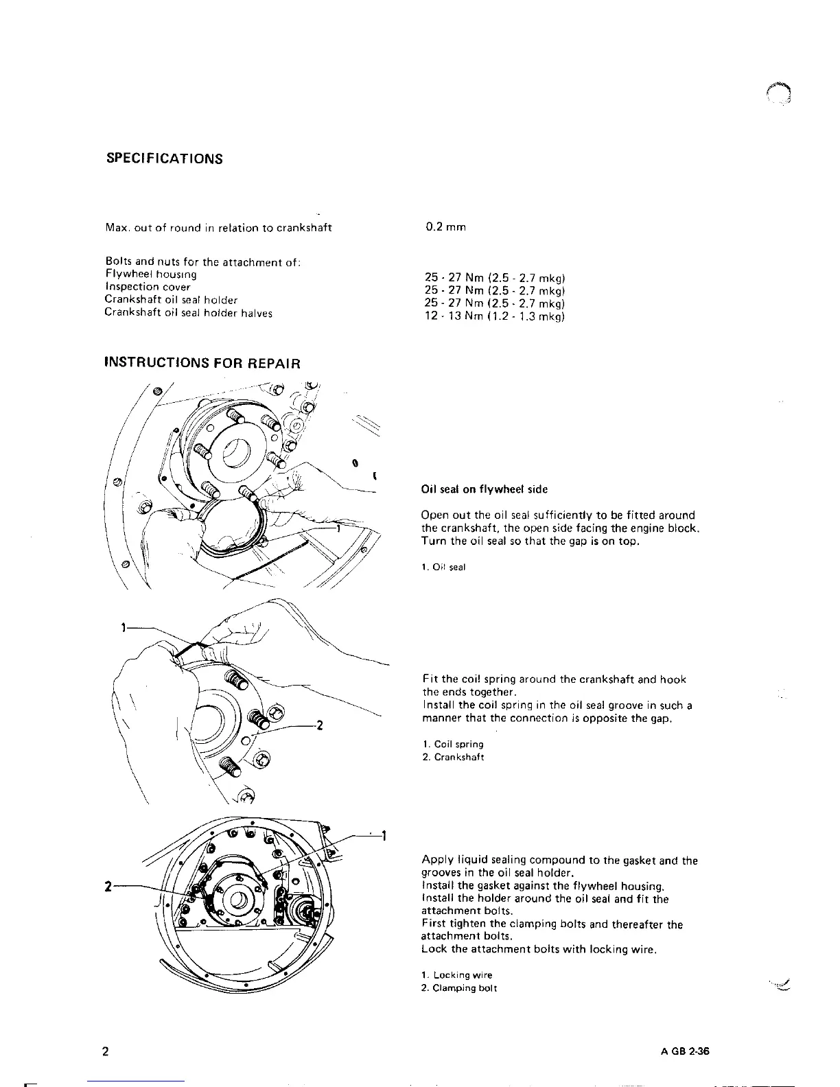 DAF DD 575 - Flywheel Housing and Crankshaft Oil Seal Specifications; Flywheel Housing and Crankshaft Oil Seal Instructions for Repair