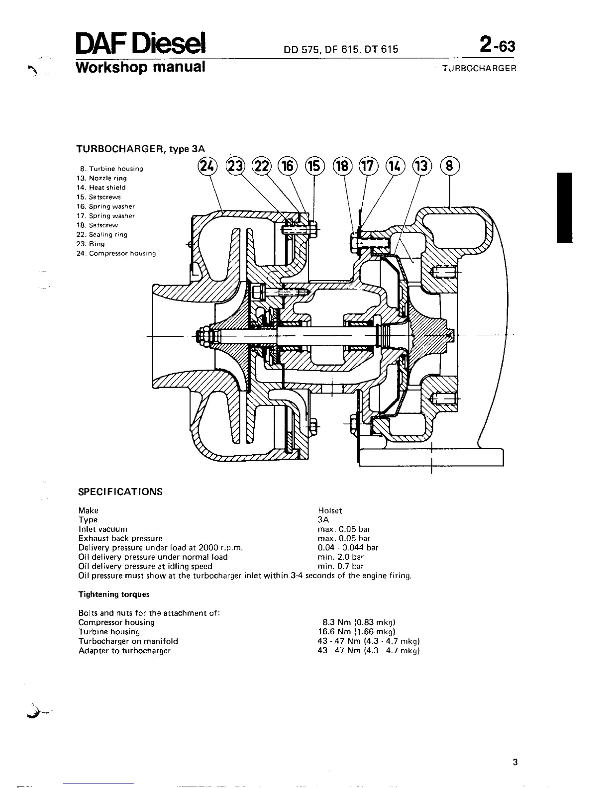 DAF DD 575 - Turbocharger Specifications (Type 3 A)