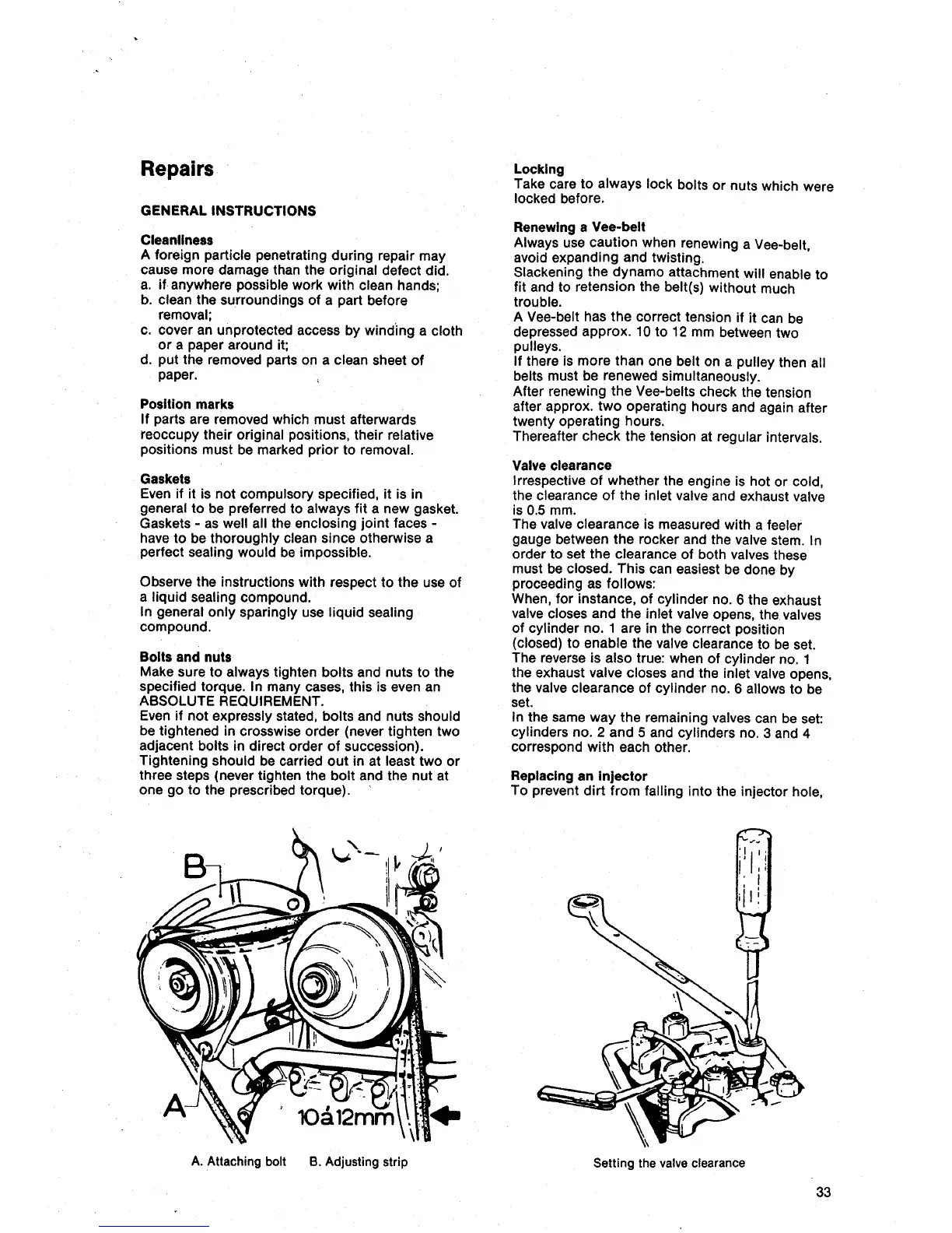 DAF DF 615 M - Repairs; General Repair Instructions; Renewing a Vee-belt; Valve Clearance