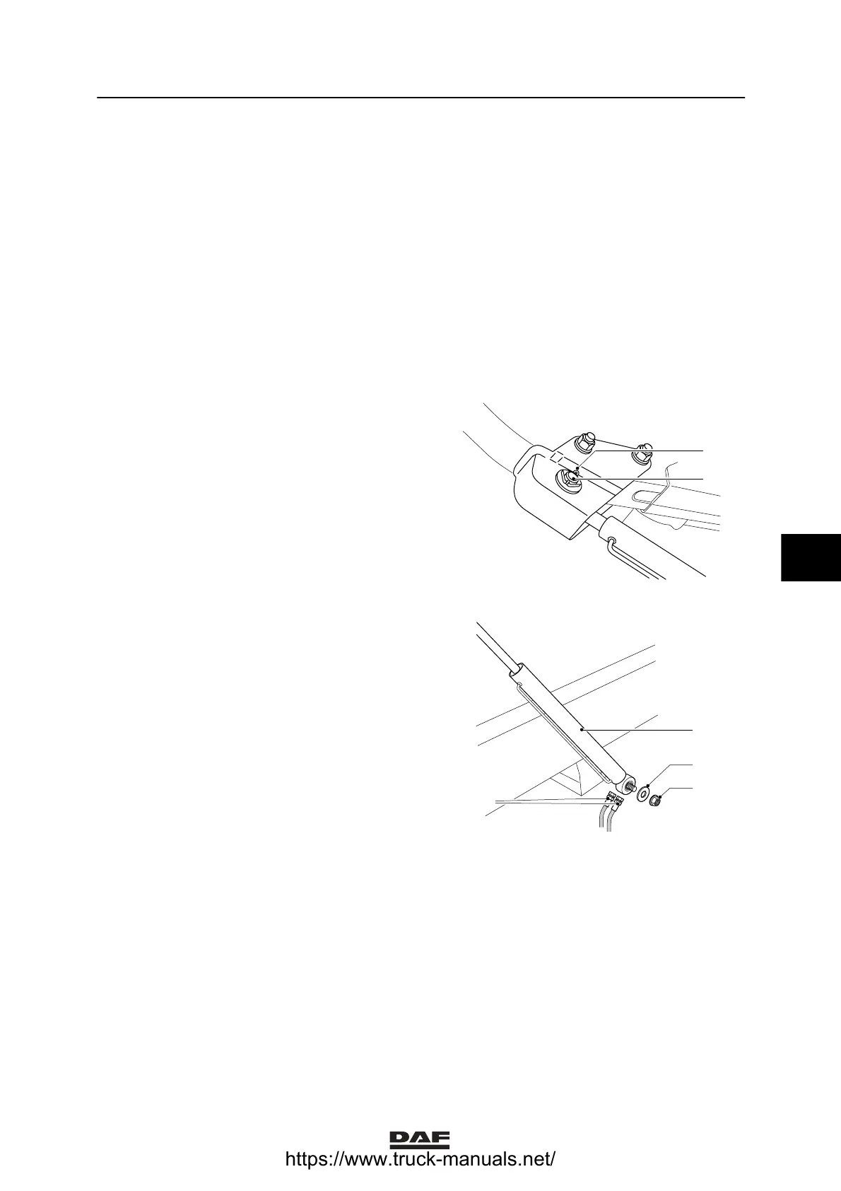 with the split pin (1) to the cab support.