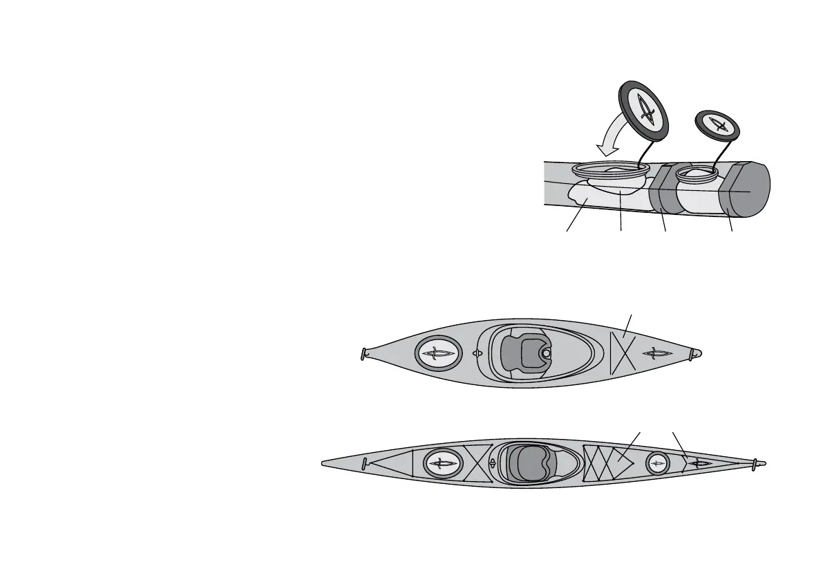 bottom and centre of the kayak and lighter