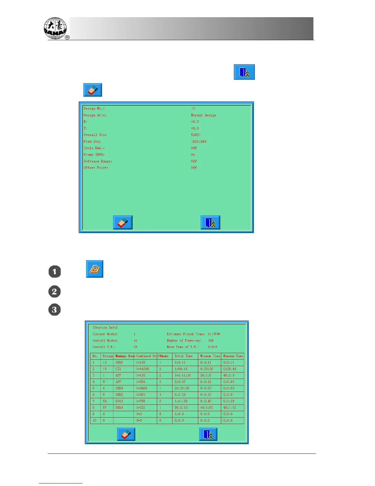 The system will show the machine’s statistics information.