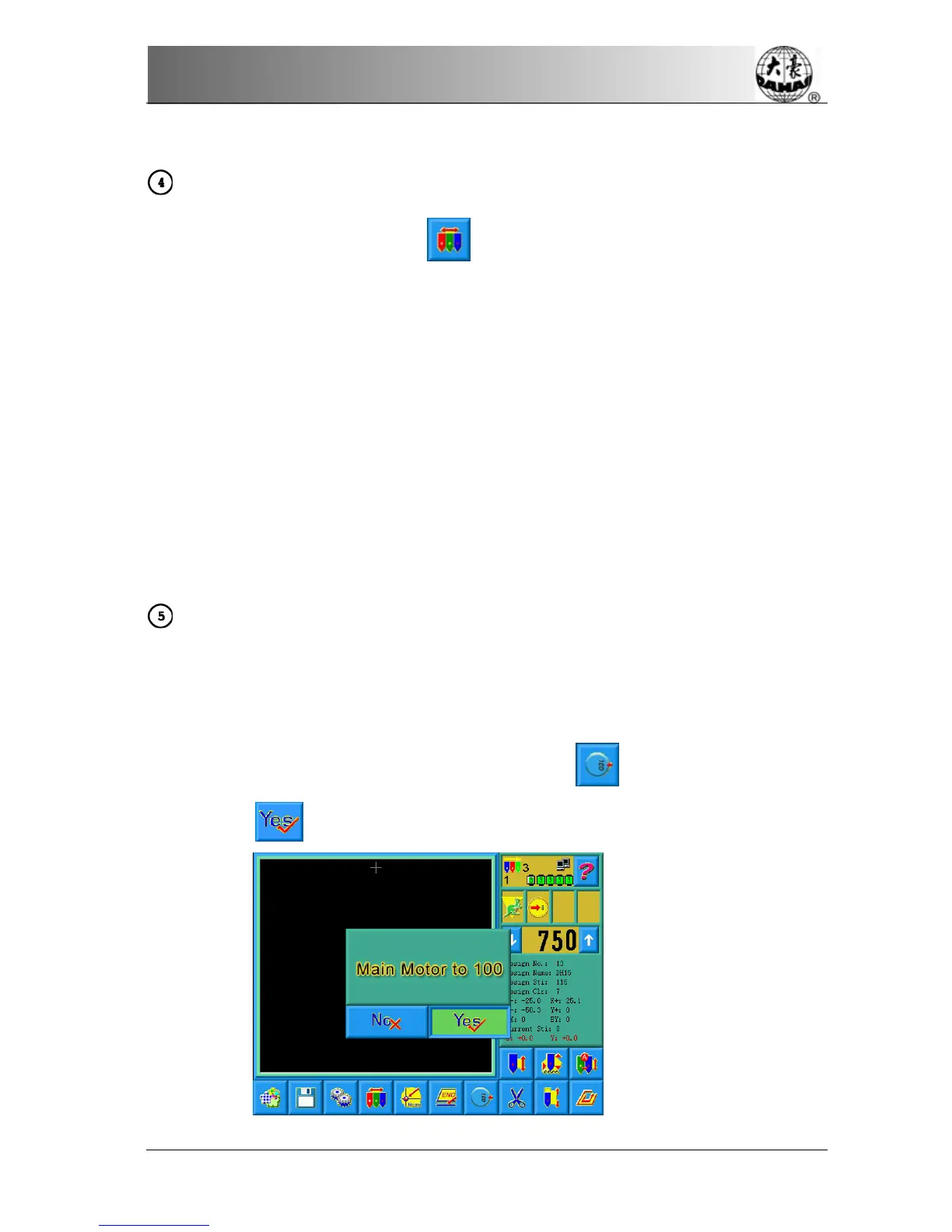 frame-moving and beginning embroidery. The user can manually turn the main