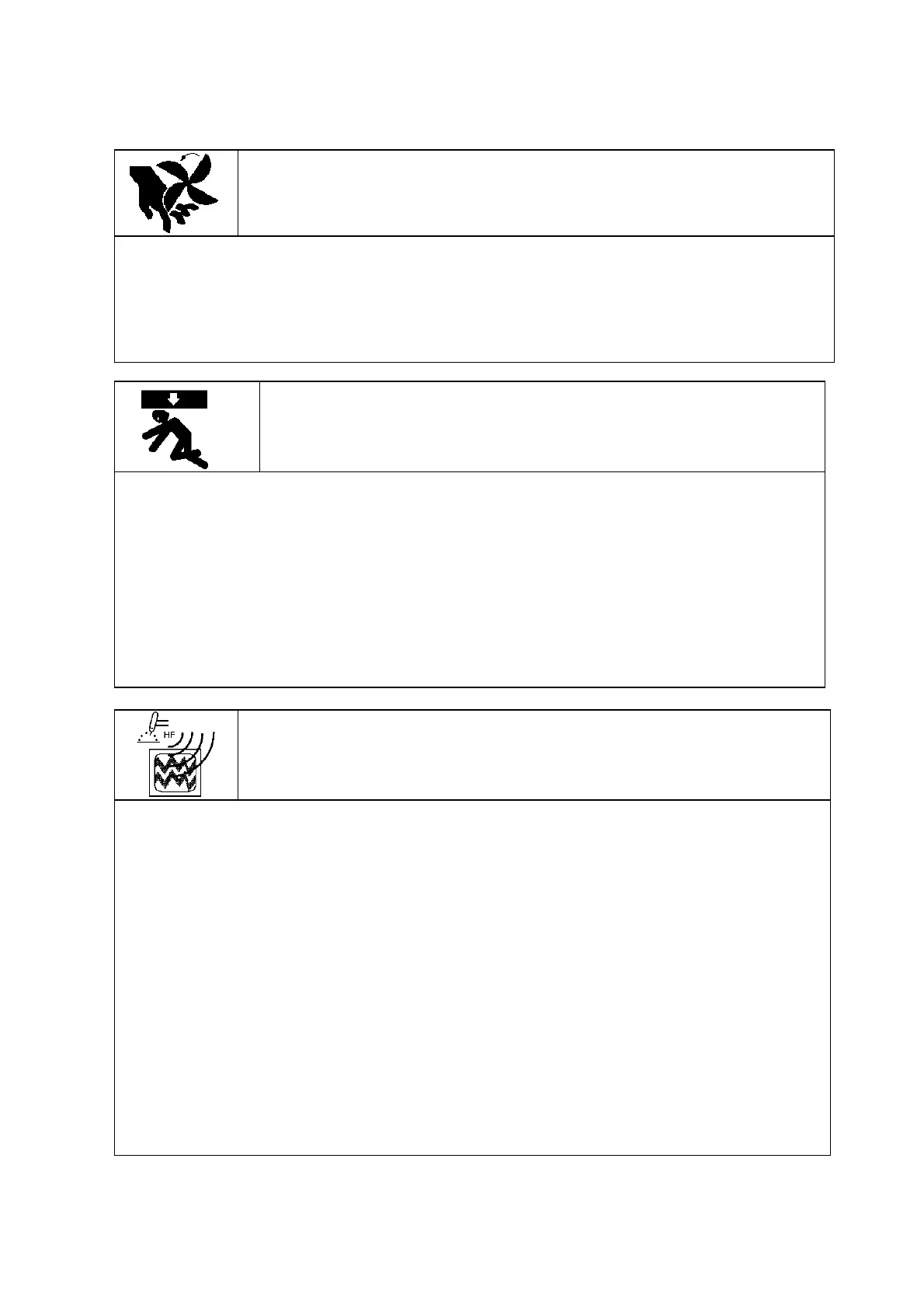 If hands, fingers, hair or clothes are put near the fan’s rotating parts or wire feeder’s feed roll,