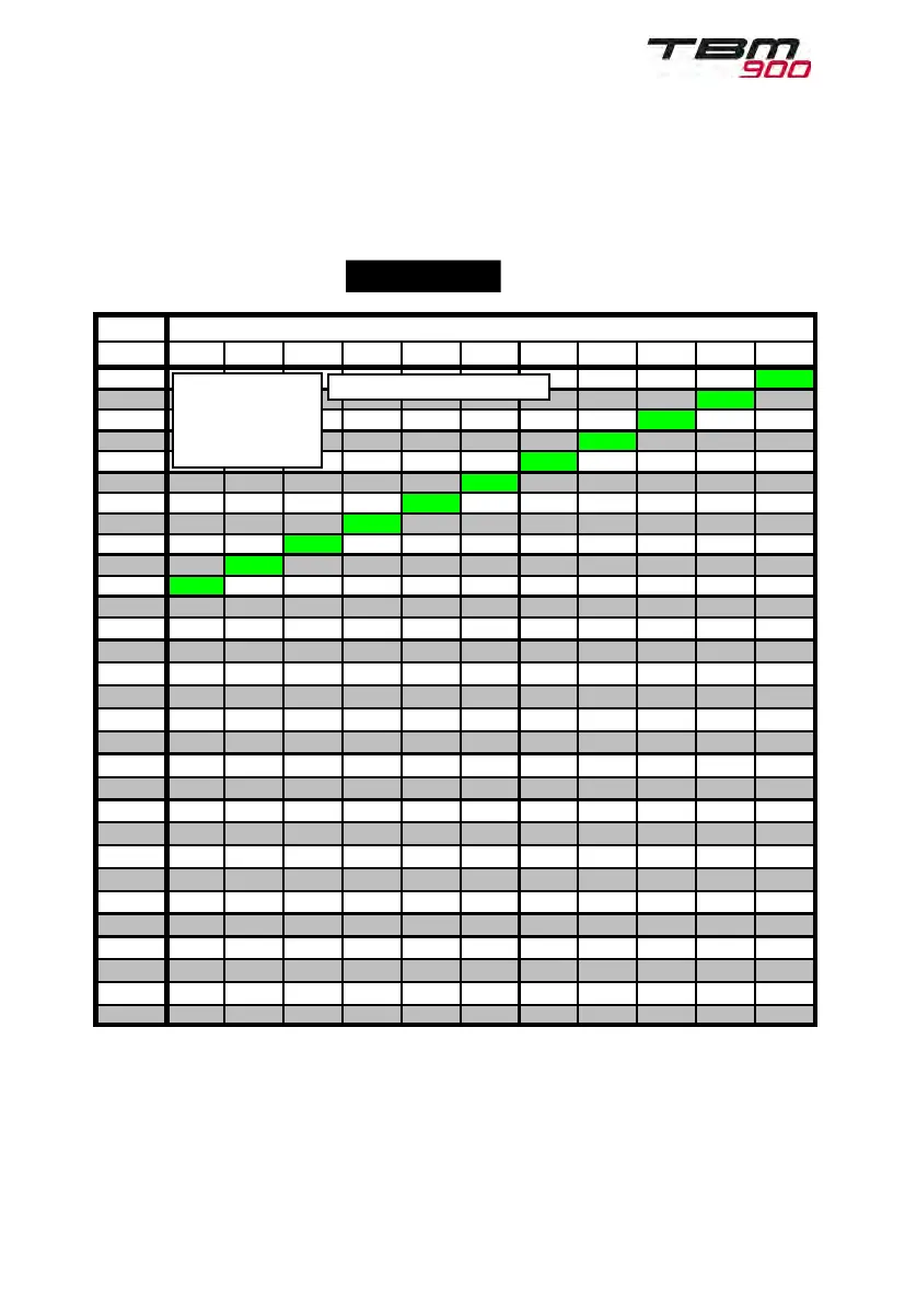 Table not valid if INERT SEP ON and/or BLEED HI msg ON.
