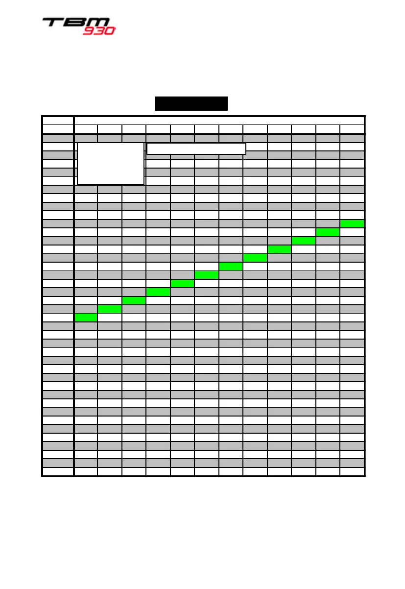 Table not valid if INERT SEP ON and/or BLEED HI msg ON.