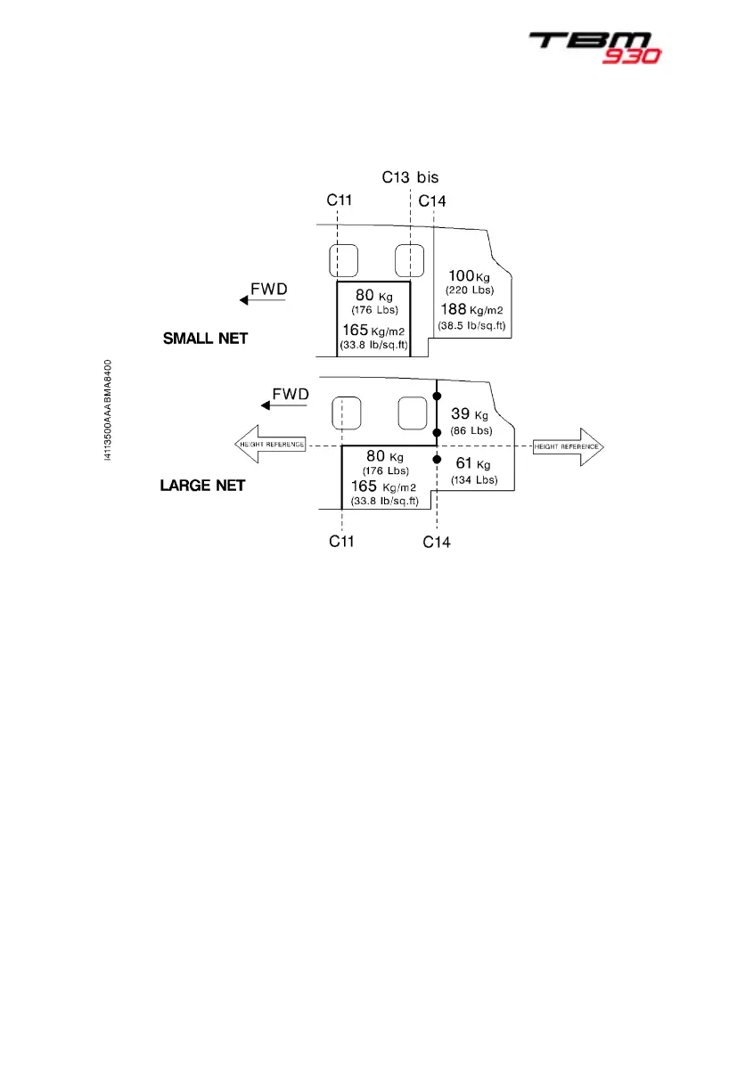 A placard indicates loading limits for each securing net.