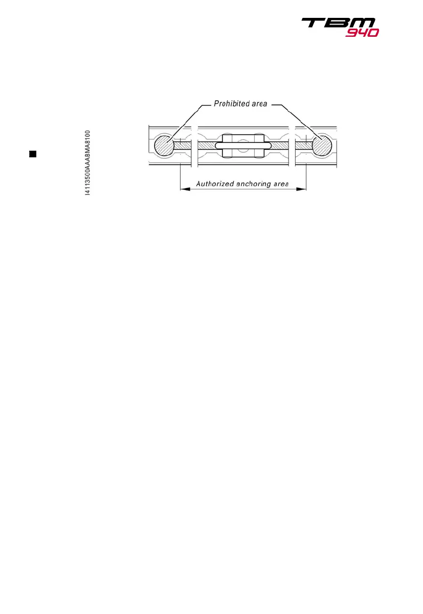 Authorized anchoring points are identified with green self-adhesive labels affixed to