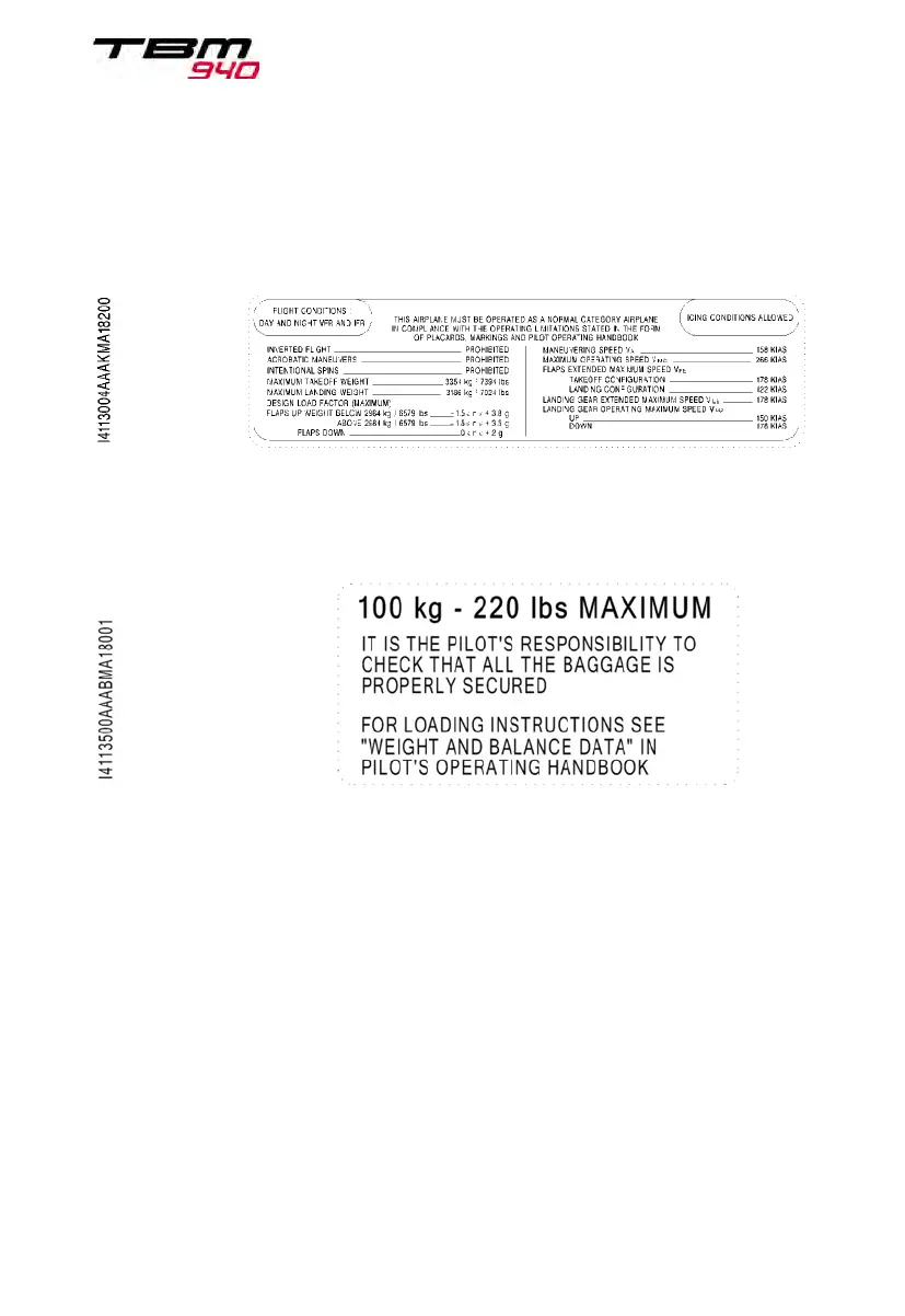 Daher TBM 940 - 2.9 Placards